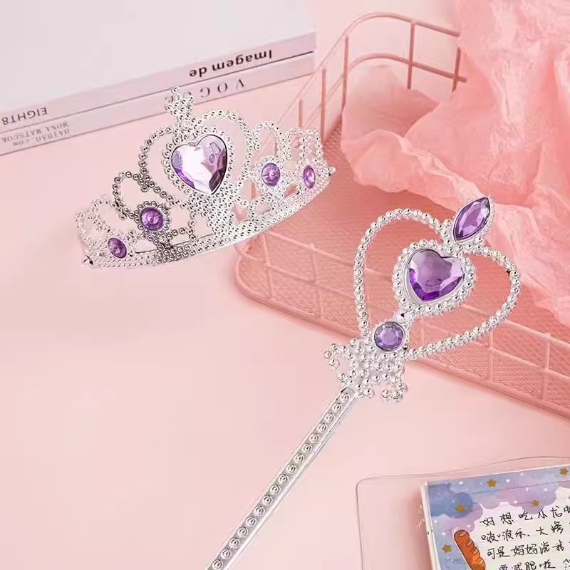 • 보라색 녹색 긴팔 공주 드레스 + 무료 왕관