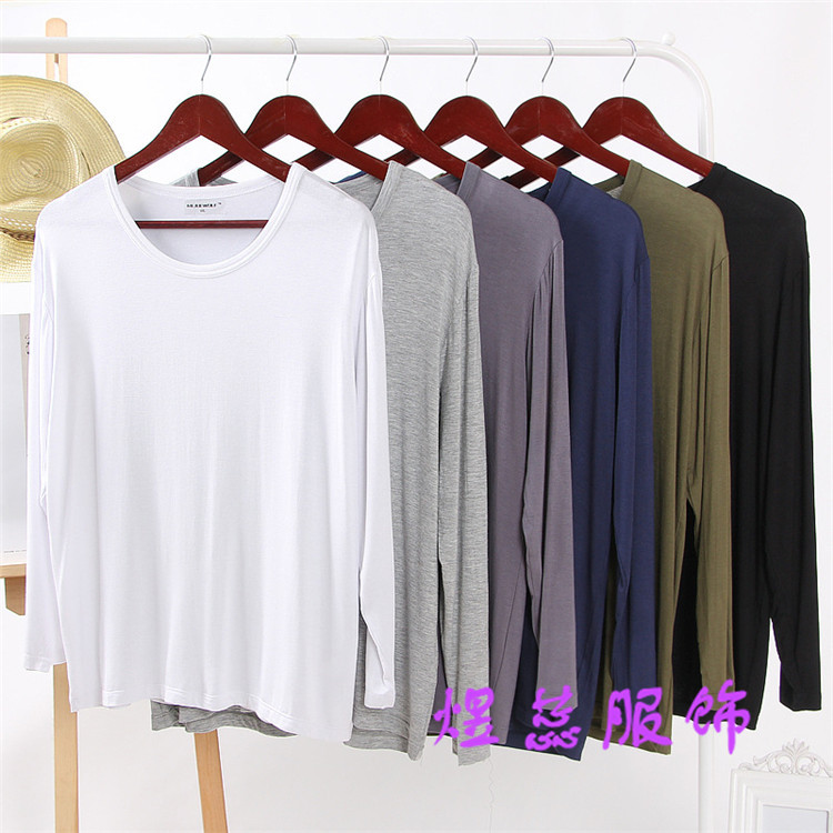 남자의 모달 가을과 겨울 라운드 넥 긴팔 티셔츠 V-넥 느슨한 스포츠 플러스 사이즈 캐주얼 잠옷 기본 가을 옷 가정 옷