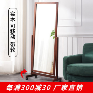 家逸穿衣镜实木全身镜可移动家用落地镜贴墙卧室试衣镜立体大镜子