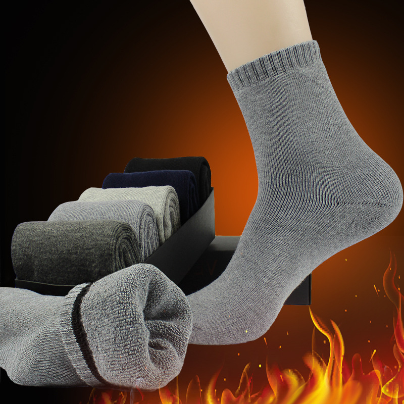공장 직접 긴 튜브 겨울 따뜻한 양말 두꺼운 솔질 단색 테리 양말 남성용 풀 타월 양말 하이 양말