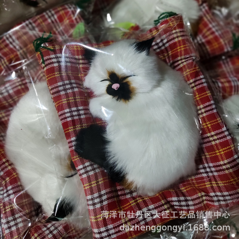 【产品材质】塑料中空硬壳外面粘的仿毛。布垫和猫咪是粘一起的,不可以拿下来哦。猫咪摆件不会动、不会叫、不会发光。皮毛产品儿童可能会咬掉毛,不建议三岁以下儿童单独玩哦。