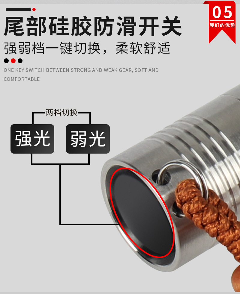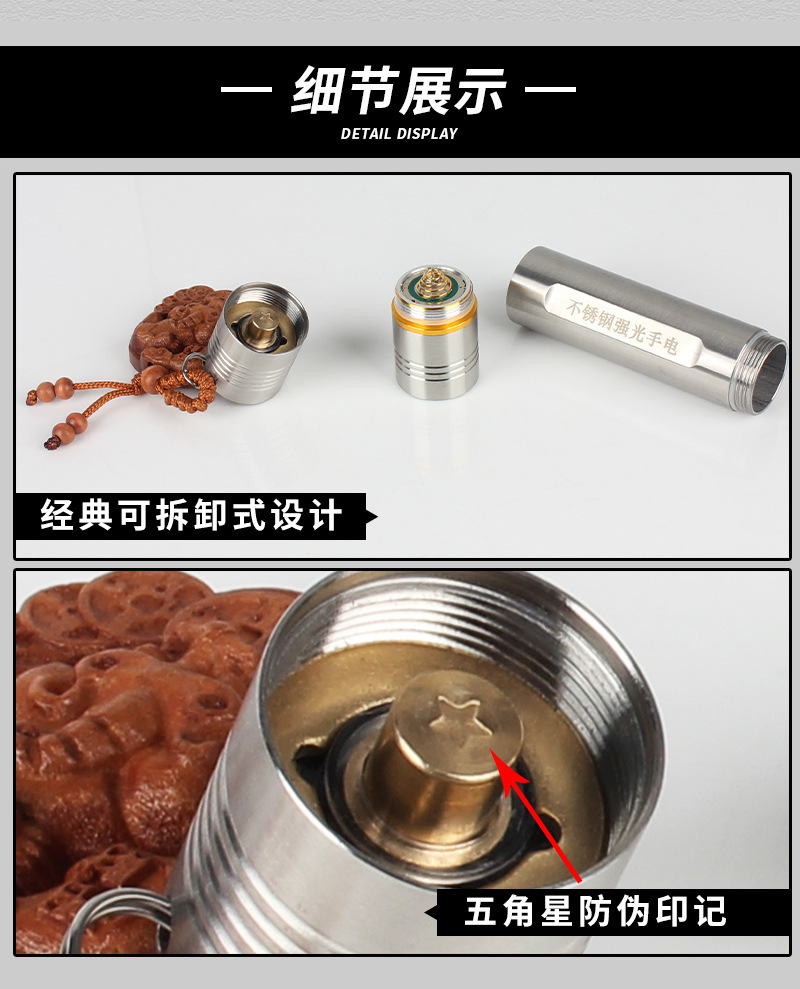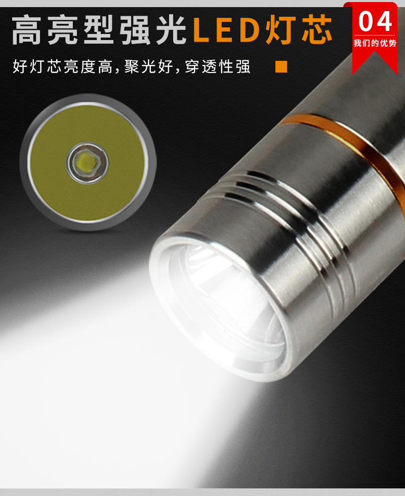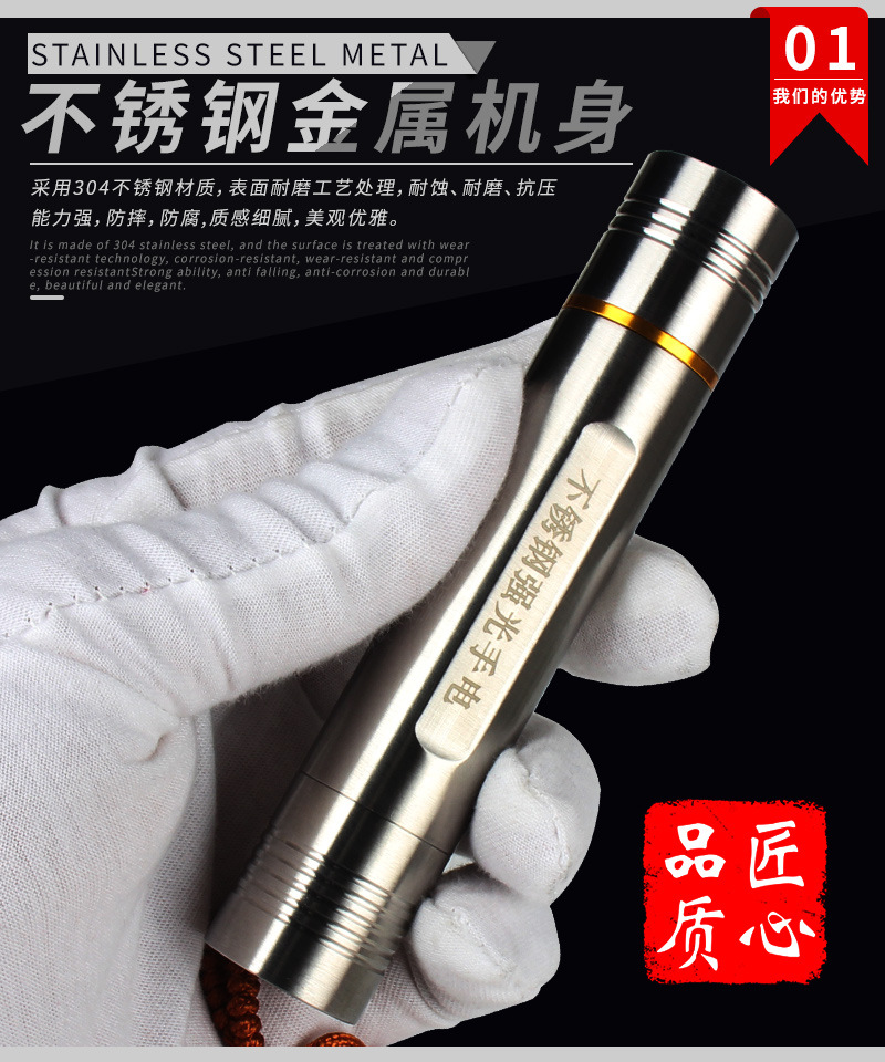 징위 제조사 스테인리스 강광 손전등 백색광 휴대용 노란빛 등산 야외 휴대용 조명