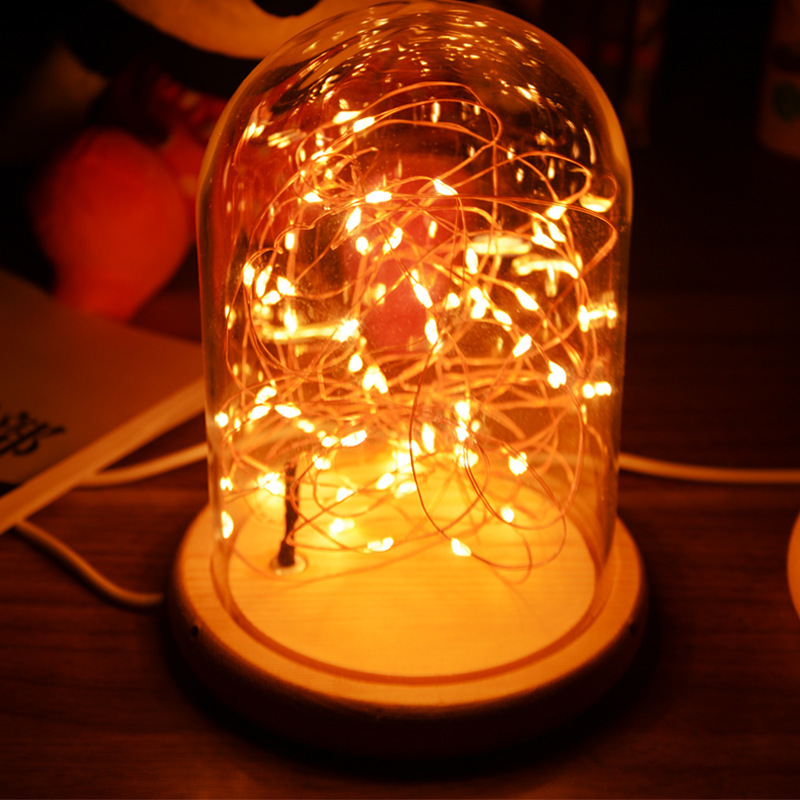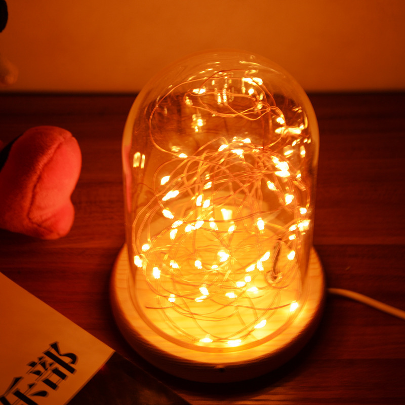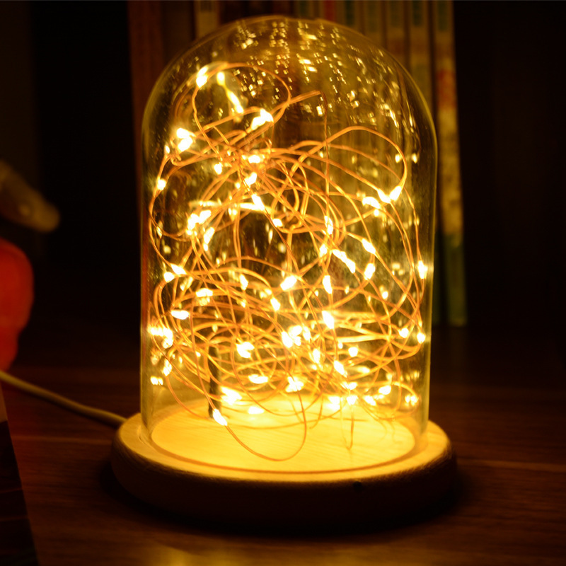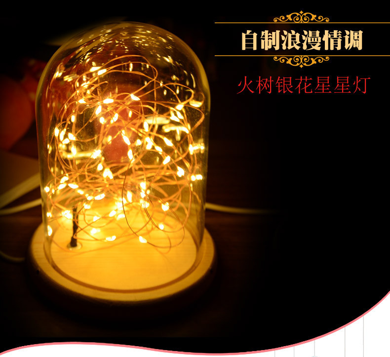 공장 화재 나무 실버 꽃 램프 유리 커버 테이블 램프 북유럽 창조적 인 LED 바 장식 로맨틱 별이 빛나는 밤 빛
