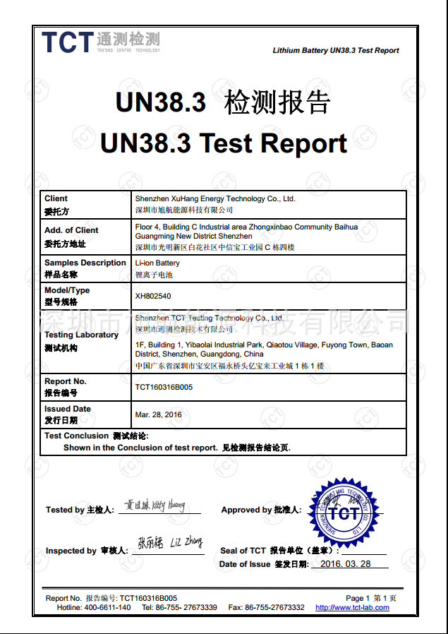 生产商:深圳旭航能源科技有限公司 充电限制电压:4.20V
