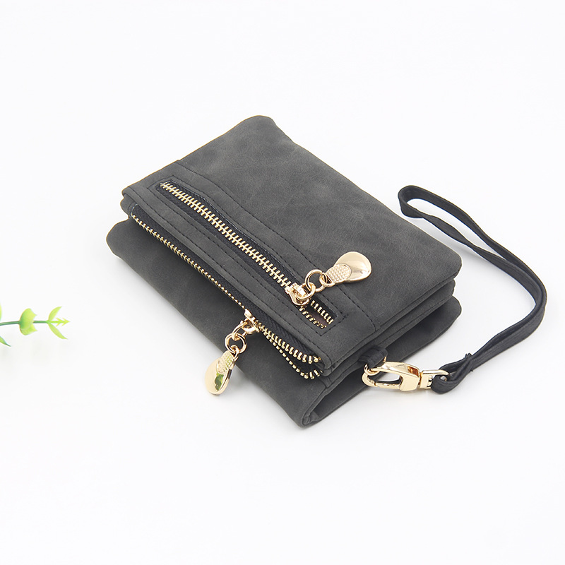 亚马逊跨境外贸爆款女长款钱包欧美复古磨砂拉链搭扣大容量三折包