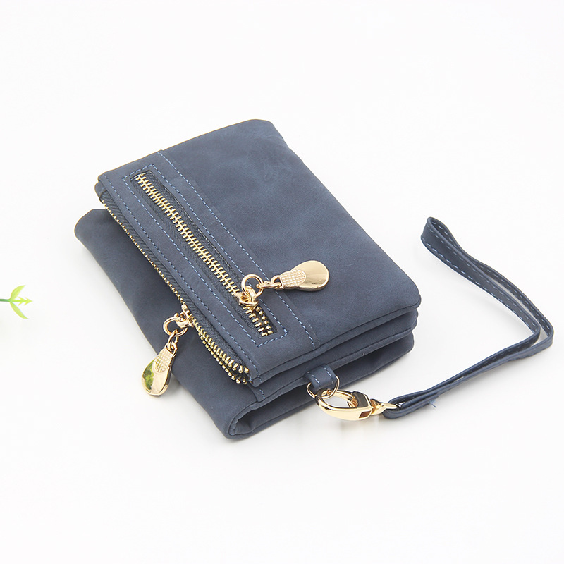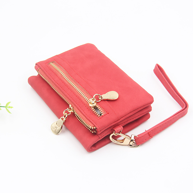 亚马逊速卖通跨境外贸钱包女短款欧美复古磨砂拉链女硬币拉链钱包