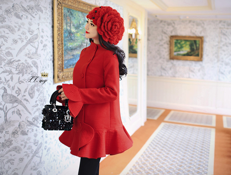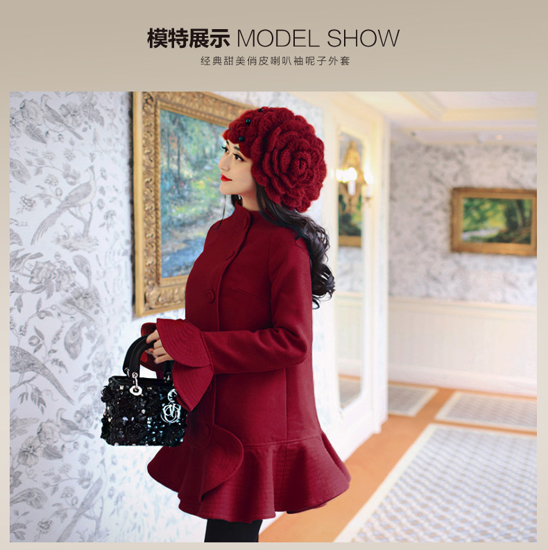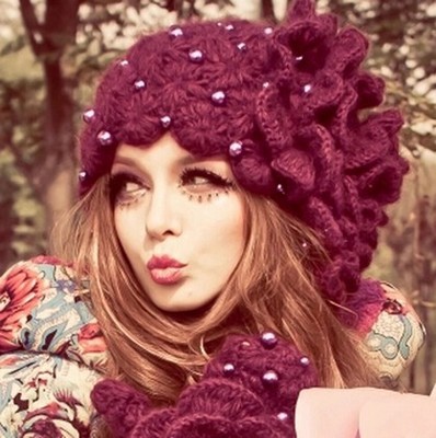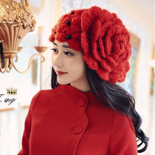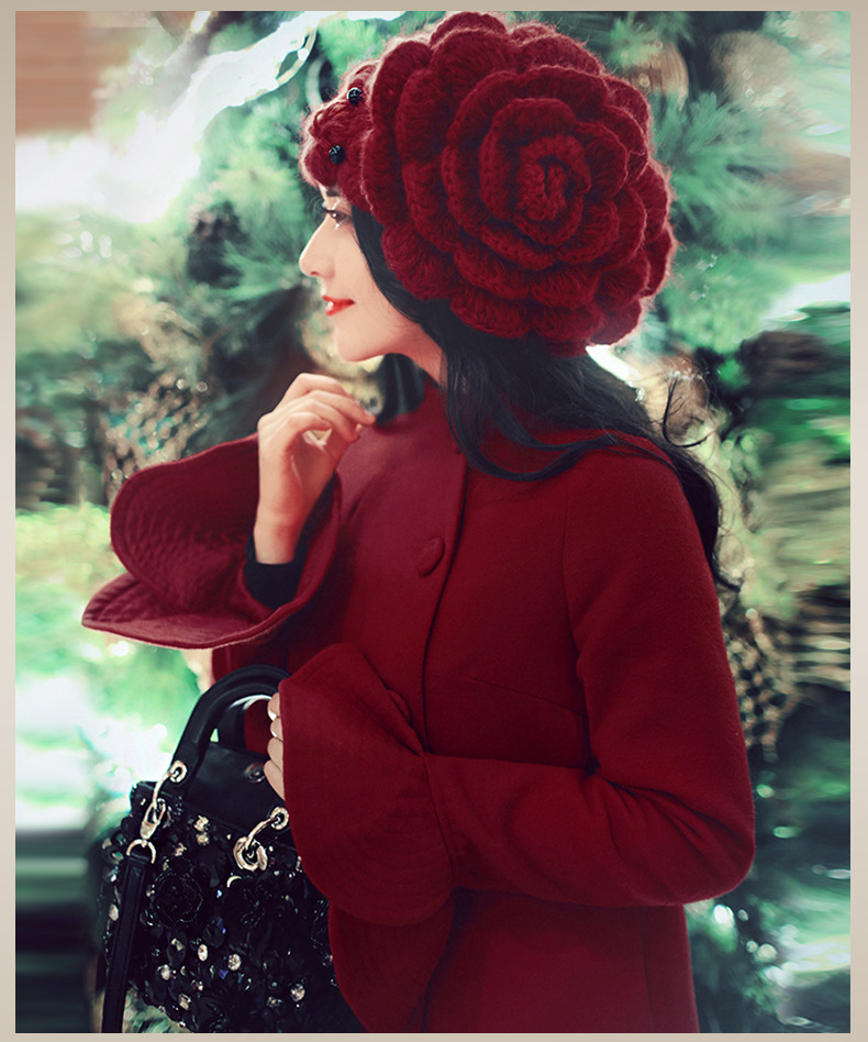 겨울 수제 올매치 따뜻한 진주 큰 꽃 베레모 패션 어린이를위한 스위트 울 니트 모자