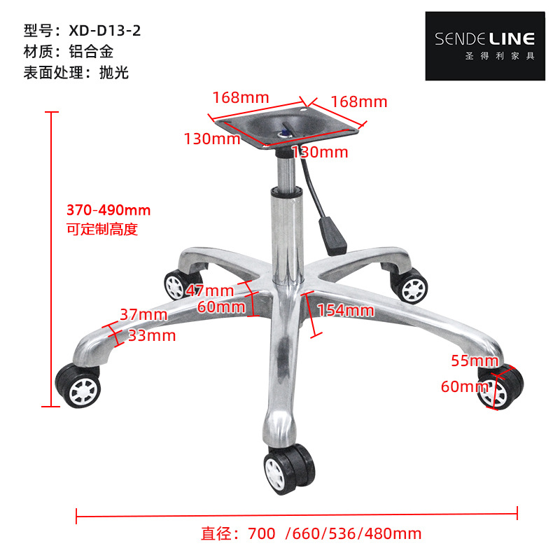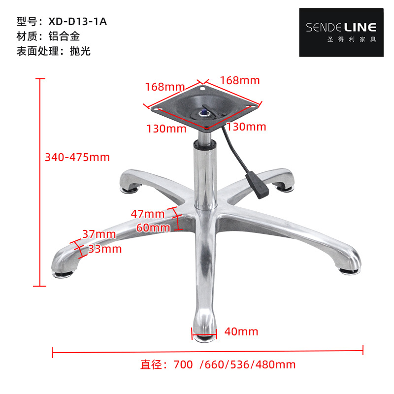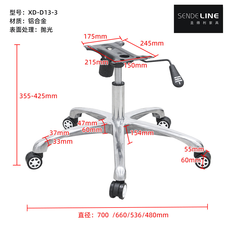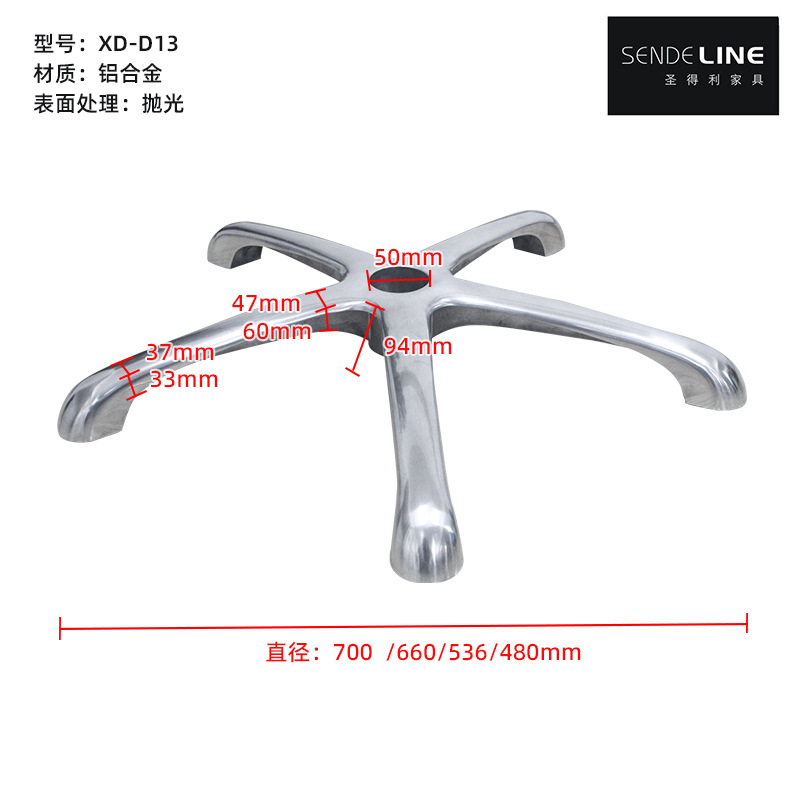 사무실 의자 부속품 기초 알루미늄 합금 5 성 회전 의자 5 발톱 기초 하이 퀄리티 광택 의자 다리스토어 가기