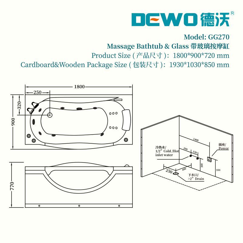 방수 유리 흰색 항온 분위기 조명 1인용 마사지 욕조 유럽 및 미국 디자이너 호텔 엔지니어링 도매