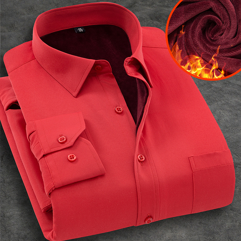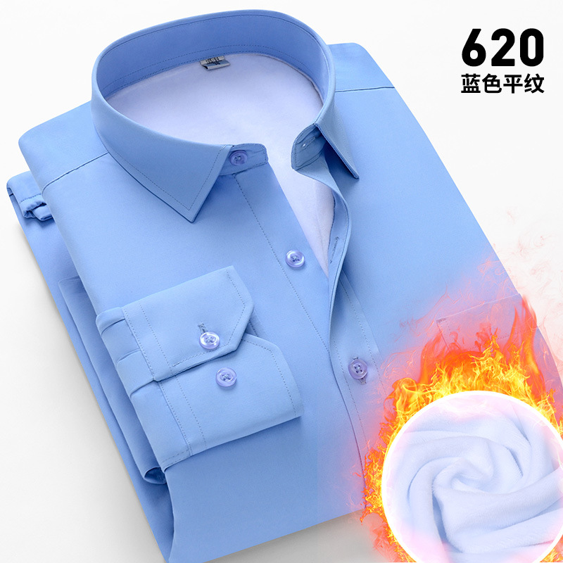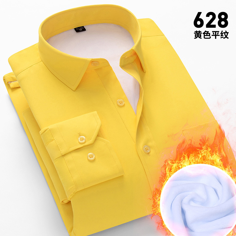 가을과 겨울 따뜻한 흰색 셔츠 슬림핏 남성용 기모 두꺼운 스트라이프 비즈니스 비 다림질 전문 정장 긴팔 셔츠