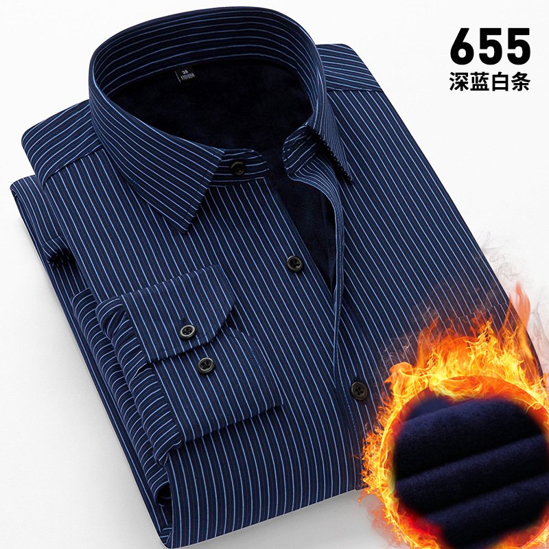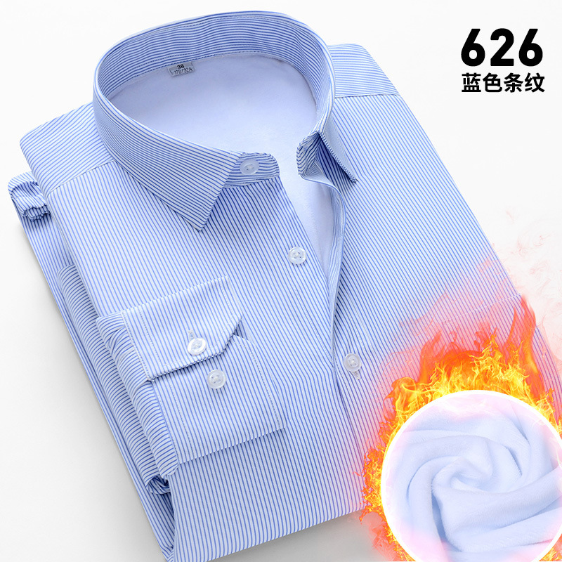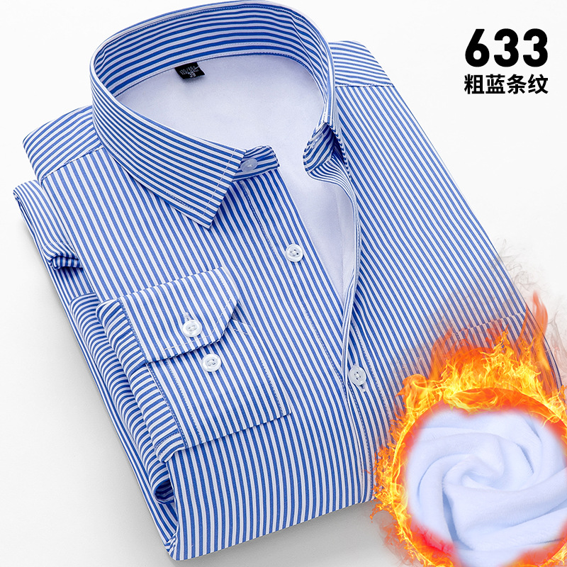 가을과 겨울 따뜻한 흰색 셔츠 슬림핏 남성용 기모 두꺼운 스트라이프 비즈니스 비 다림질 전문 정장 긴팔 셔츠스토어 가기
