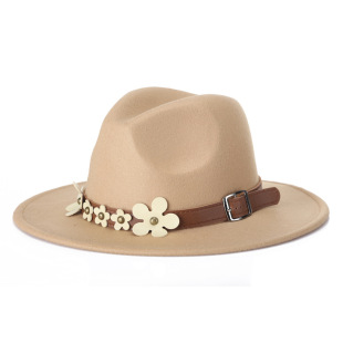 礼帽2019秋冬新款五朵小白花英伦时尚爵士帽实力工厂批发跨境热卖