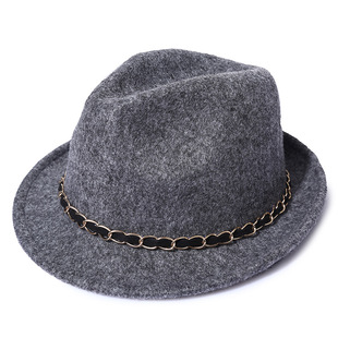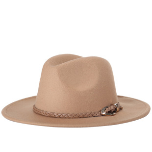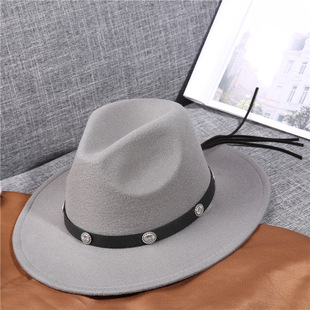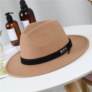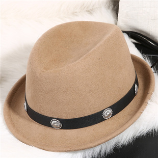 帽子秋冬2019英伦毛呢礼帽欧美简约皮带大沿爵士帽跨境外贸批发