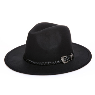2019秋冬男款帽子毛呢英伦欧美礼帽亚马逊皮带爵士帽厂家批发定制