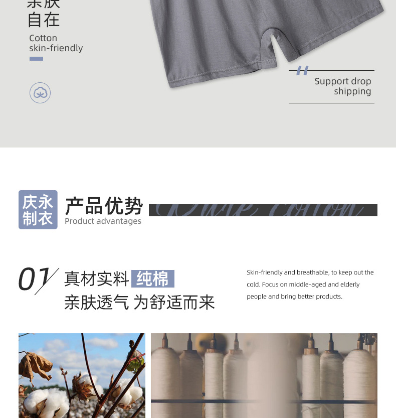 남성용 복서 브리프, 순면 가랑이 속옷, 편안하고 통기성, 중년 및 노인, 하이 웨이스트, 심플, 루즈, 캐주얼, 흔적 없음스토어 가기