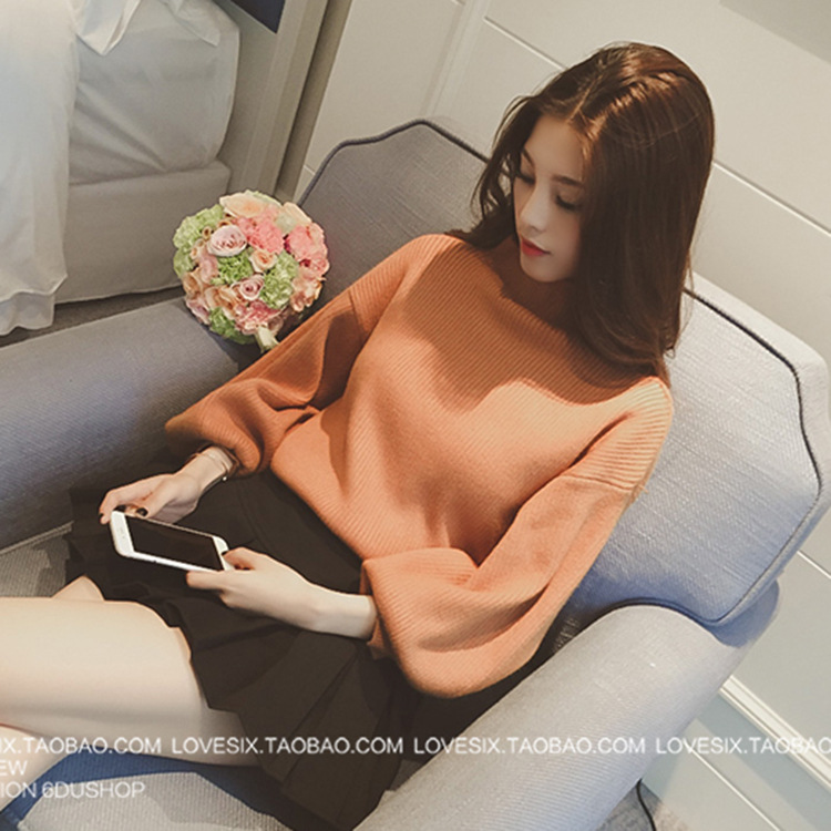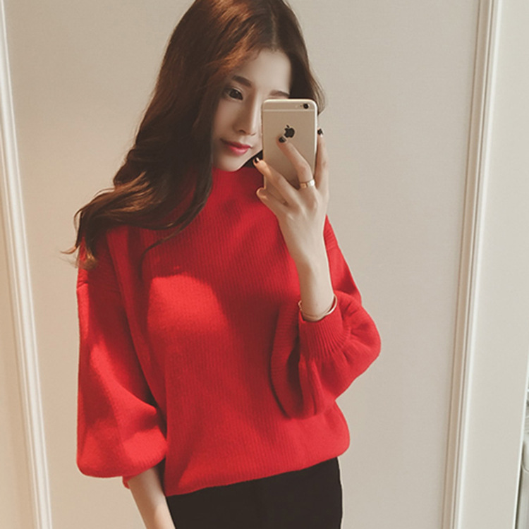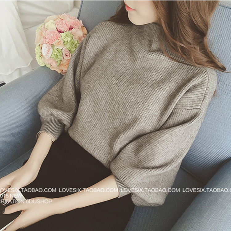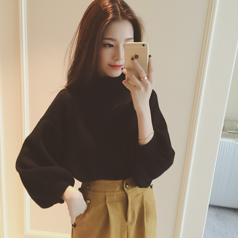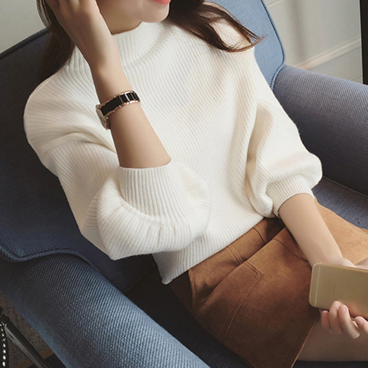 2023 가을과 겨울 새로운 단색 느슨한 풀오버 스웨터 하프 하이 칼라 I 버블 슬리브베이스 스웨터 여성 의류의 한국어 버전스토어 가기