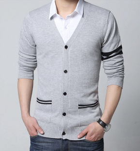 2020 가을과 겨울 한국 스타일 새로운 남성용 스웨터 패션 슬림핏 격자 무늬 긴 소매 옷깃 남성 니트 가디건 재킷스토어 가기