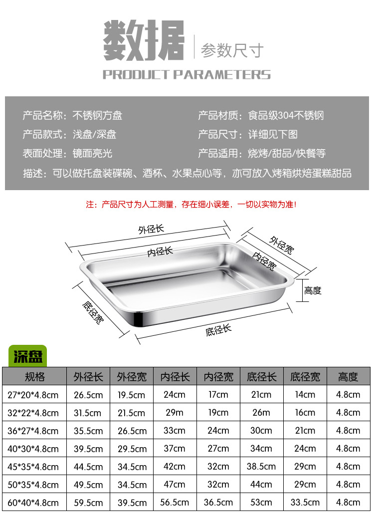 304 스테인리스 사각 접시, 찜밥 접시, 바베큐 접시, 가정용 스테인리스 트레이, 직사각형 준비용 접시, 식사 접시