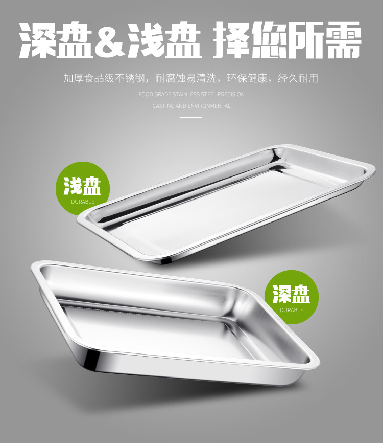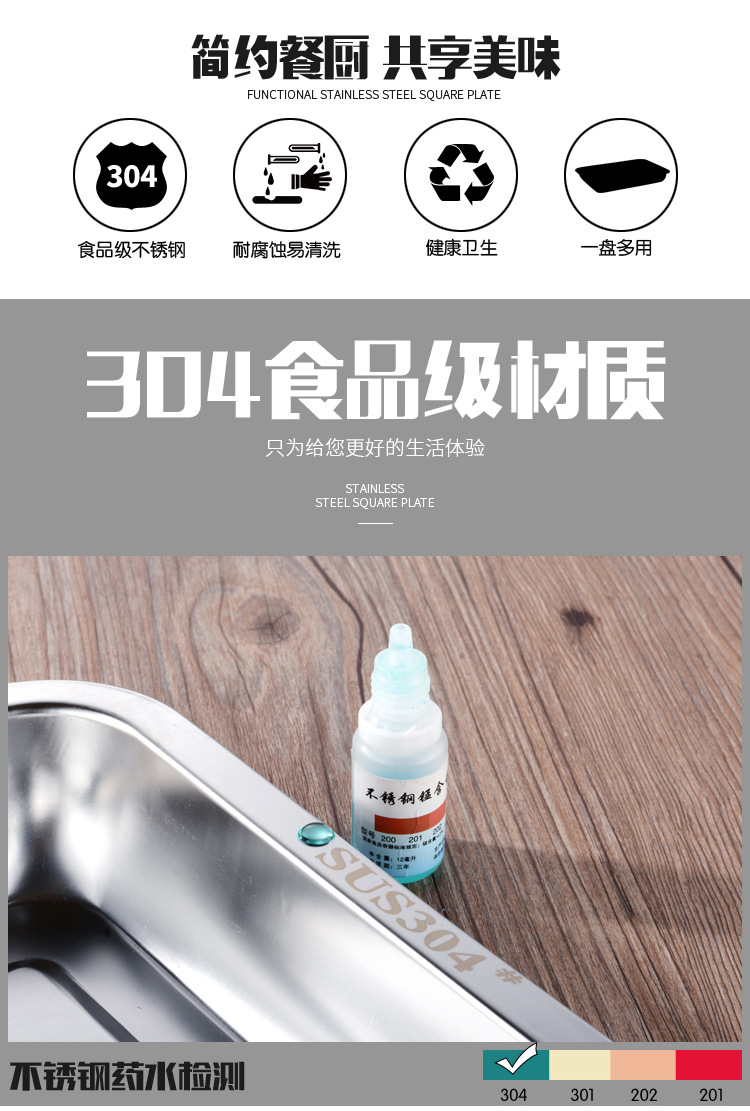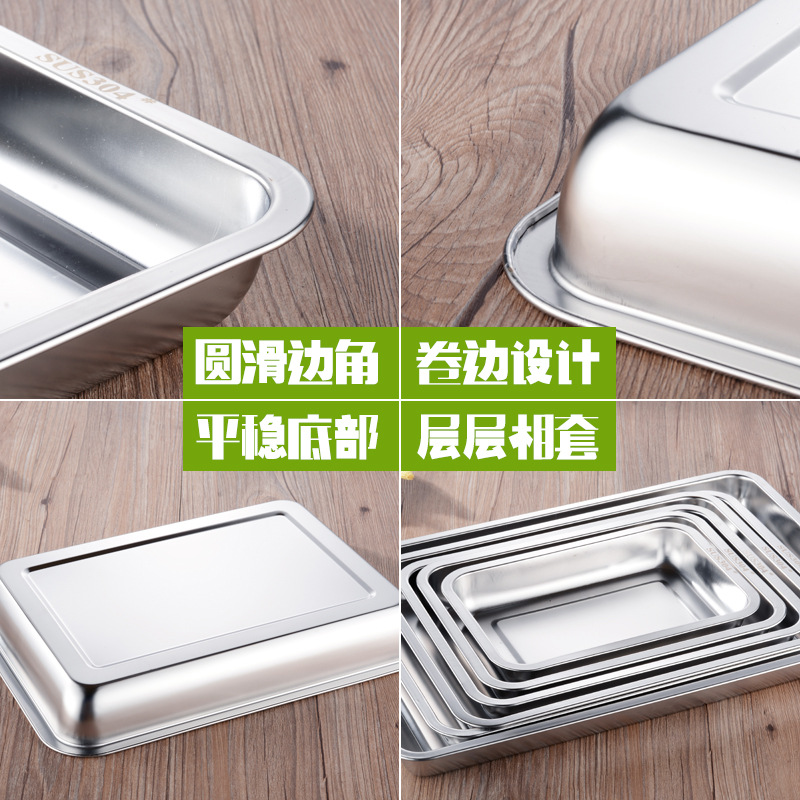 304 스테인리스 사각 접시, 찜밥 접시, 바베큐 접시, 가정용 스테인리스 트레이, 직사각형 준비용 접시, 식사 접시스토어 가기