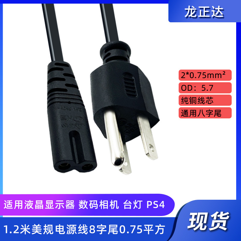 厂家纯铜美标八字尾美国电源线带插头 UL美式三插8字尾美规电源线