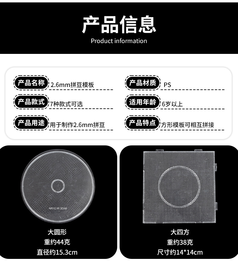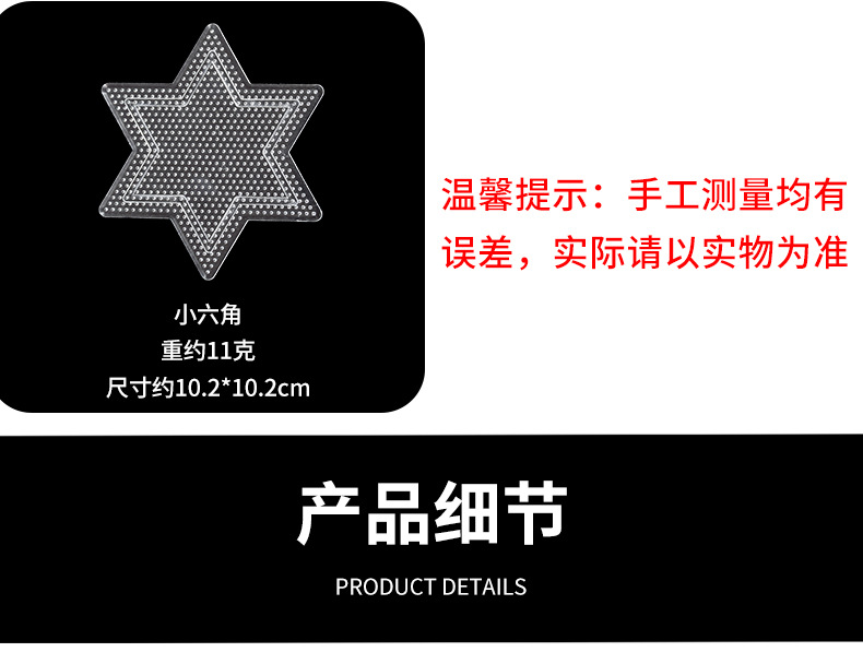 产品重量:大四方模板约38克,大圆形模板约44克,大六边模板约44克,小四方模板约8克,小圆形模板约11克,小爱心模板约10克,小六角约11克