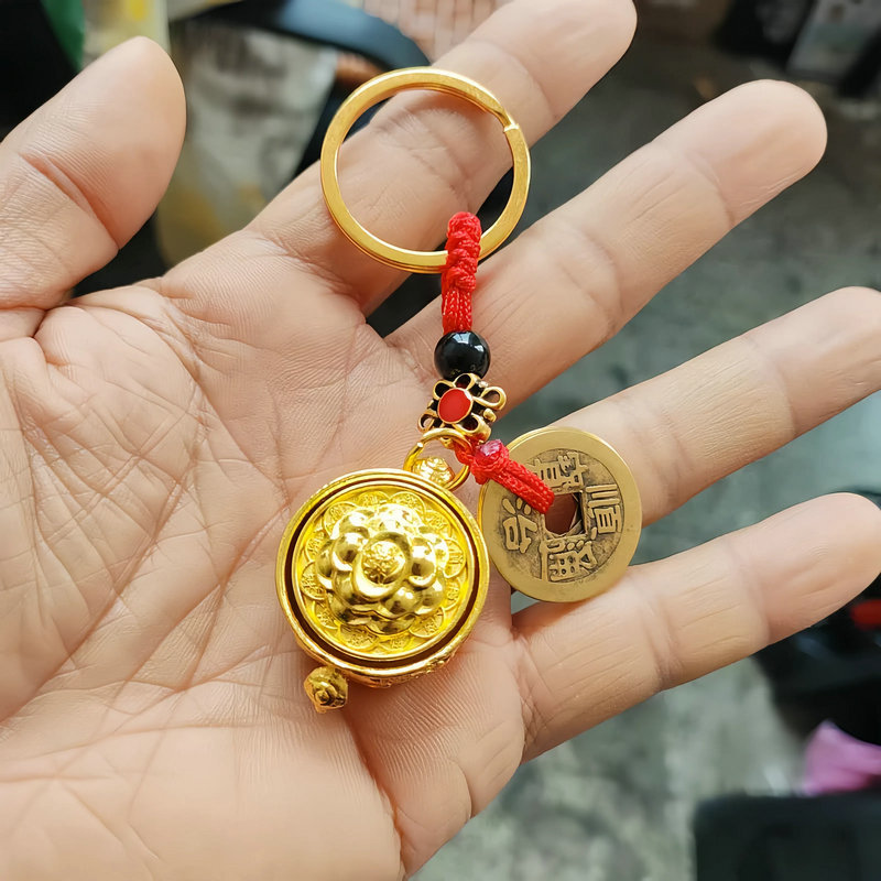 보름달 주간 소품 황금 주판 열쇠 고리 펜던트 진짜 구리 다섯 황제 돈 산 유령 회전 자동차 열쇠 펜던트