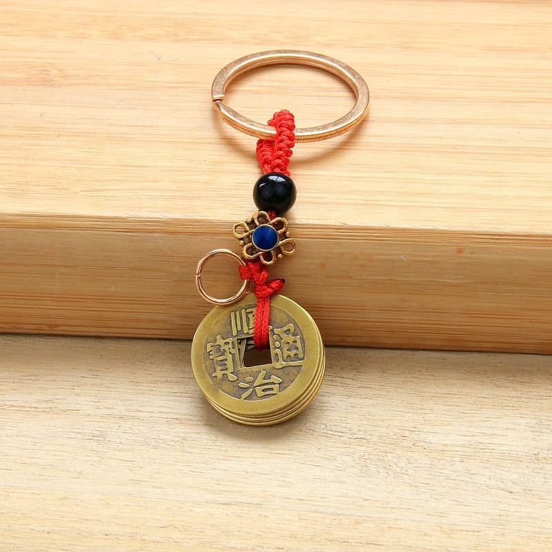 • 붉은 밧줄 검은 구슬-구리 다섯 황제 열쇠 고리