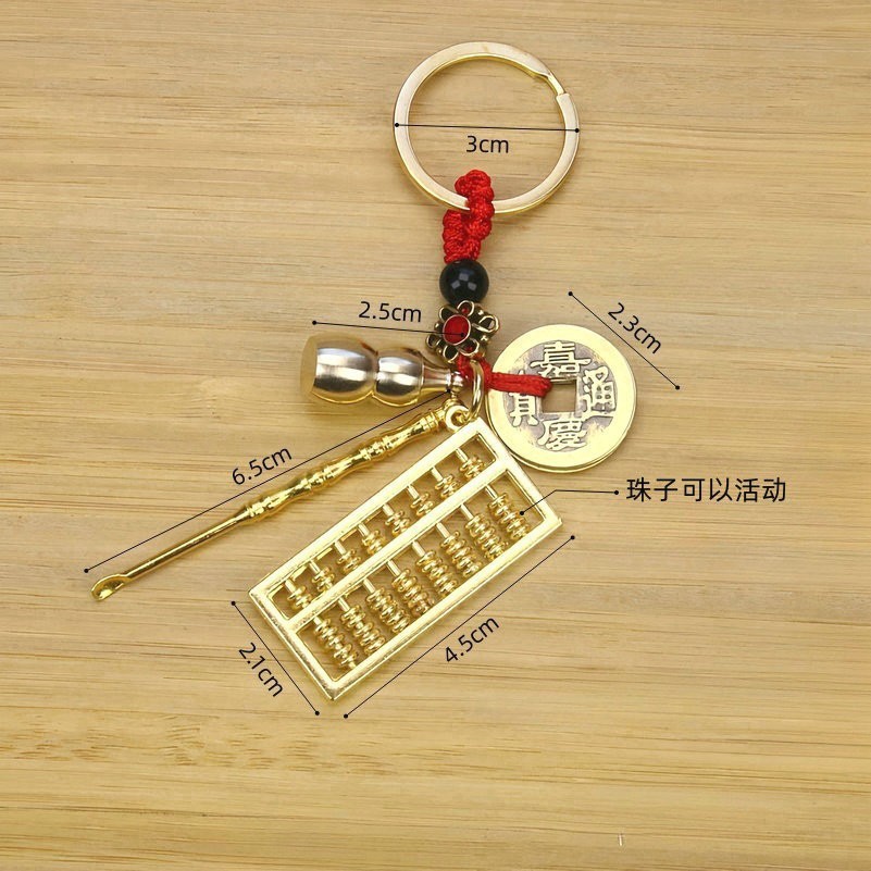 보름달 주간 소품 황금 주판 열쇠 고리 펜던트 진짜 구리 다섯 황제 돈 산 유령 회전 자동차 열쇠 펜던트스토어 가기