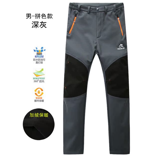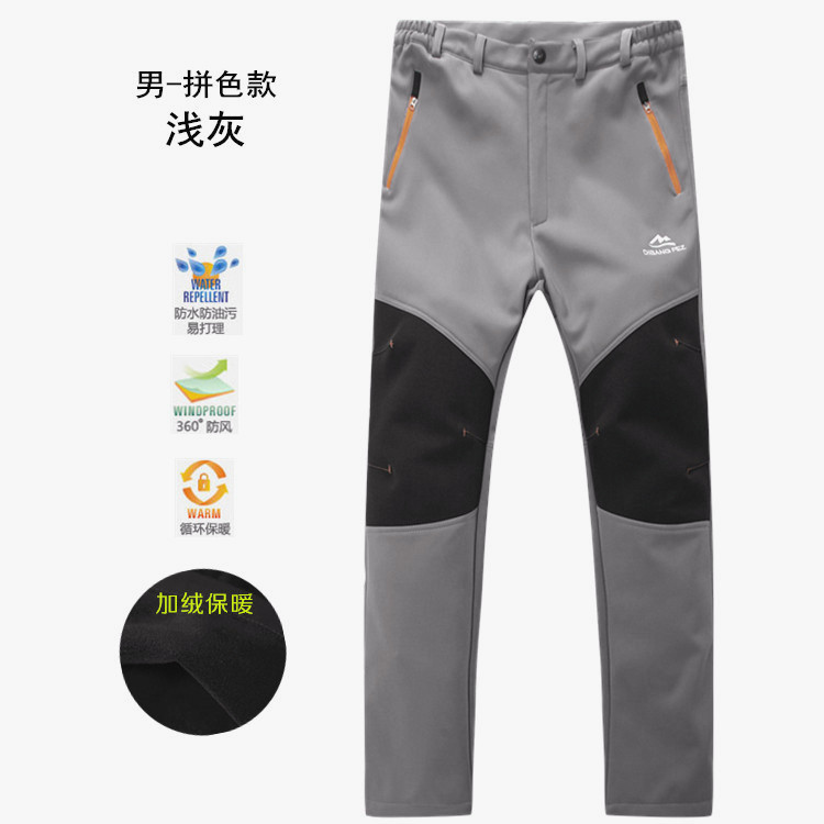 남자의 방풍 방수 두꺼운 따뜻한 커플의 야외 바지 소프트 쉘 등반 양털 바지 여자의 러쉬 바지