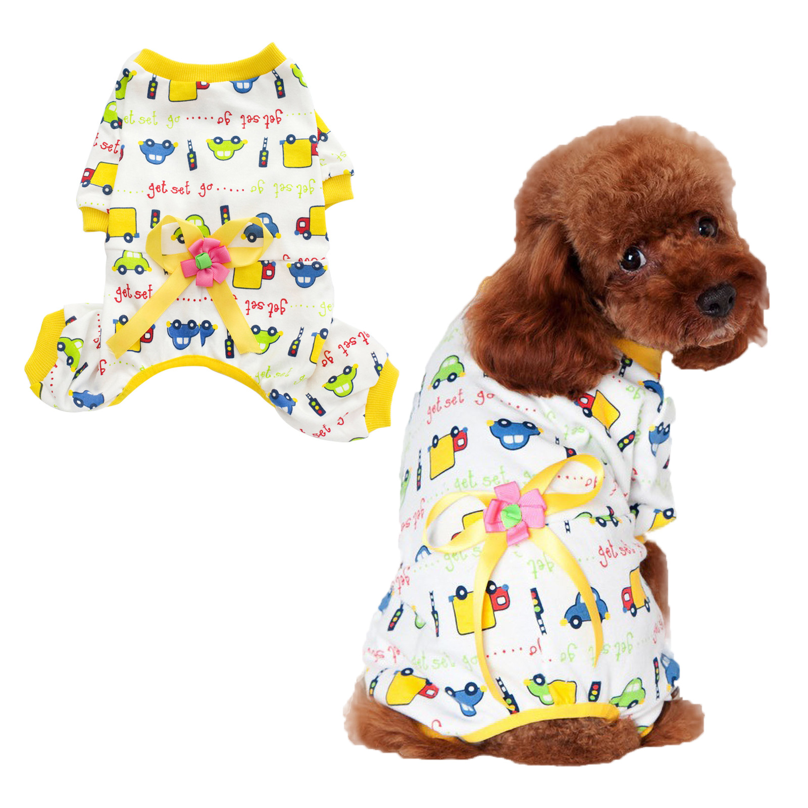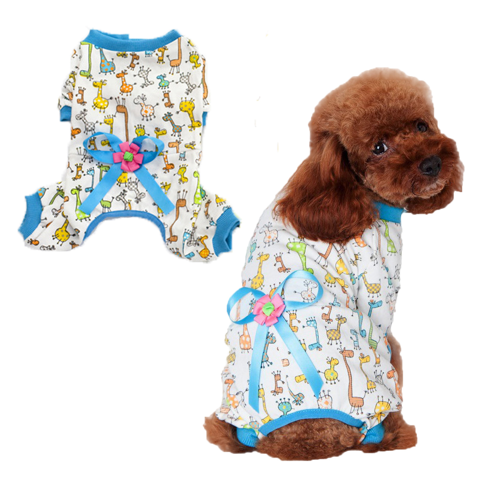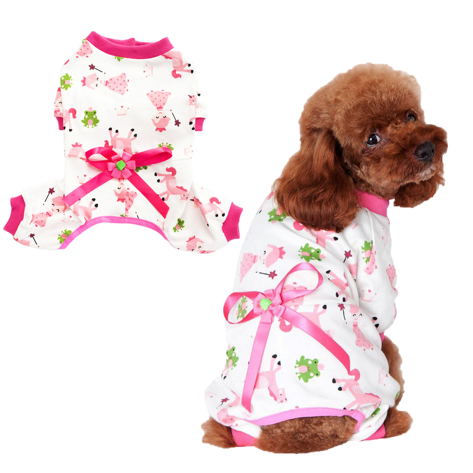 애완 동물 개 귀여운 네 발 인쇄 홈 잠옷 테디 쓴 팬더 키티 봄과 가을 에어컨 의류 개 옷