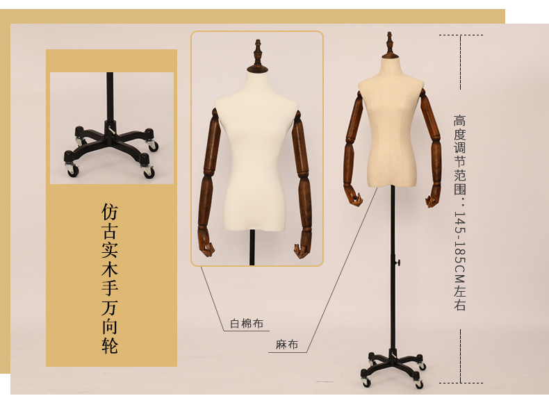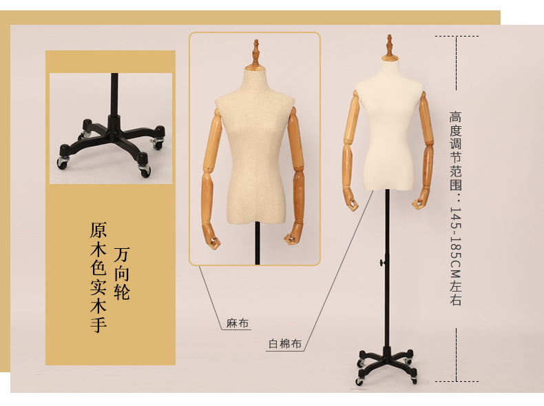 유니버설 휠 디스플레이 랙 윈도우 디스플레이 더미가있는 공장 도매 의류 매장 반 길이 천 여성 모델 소품