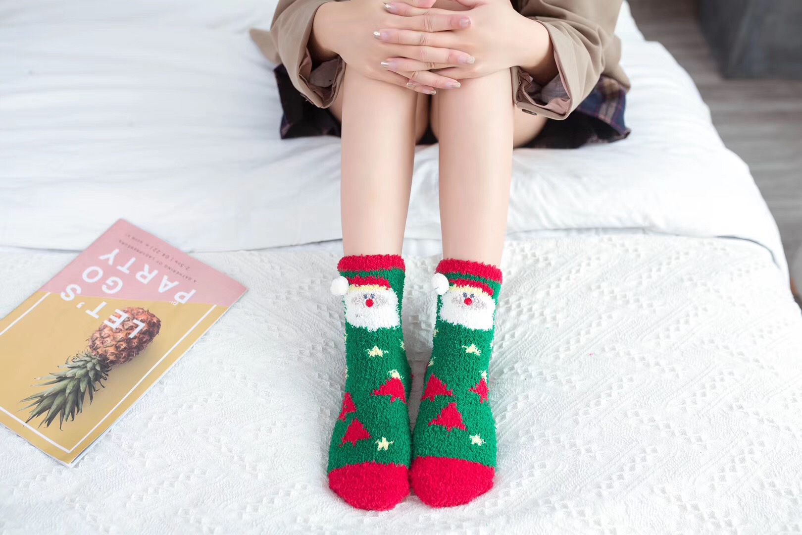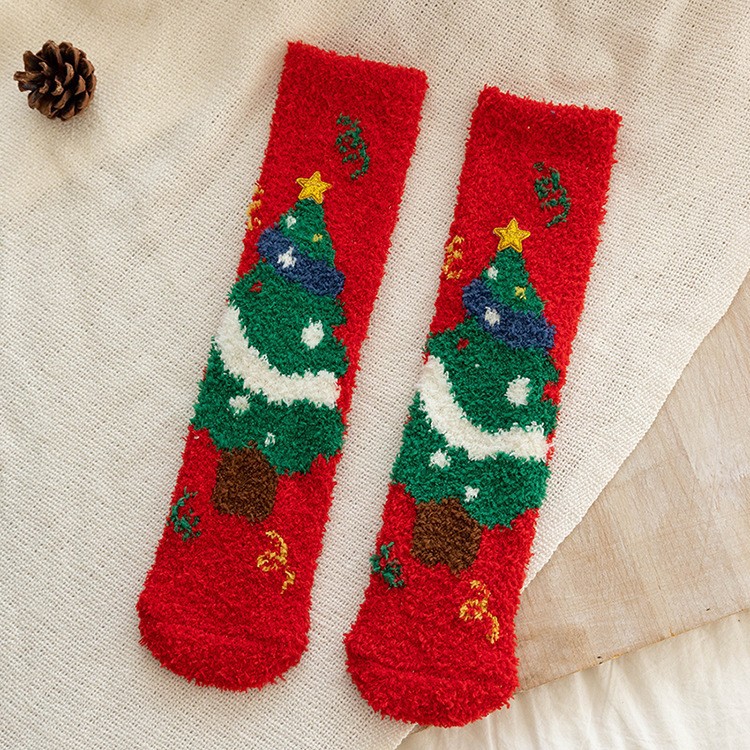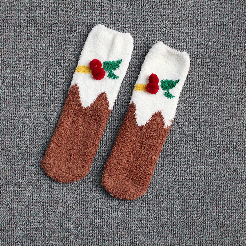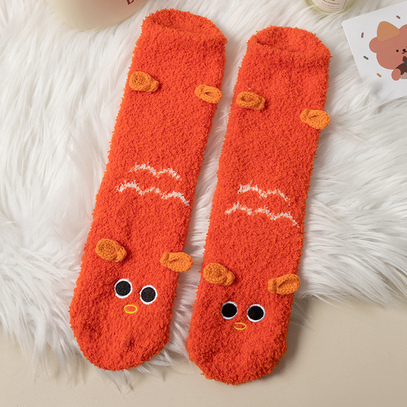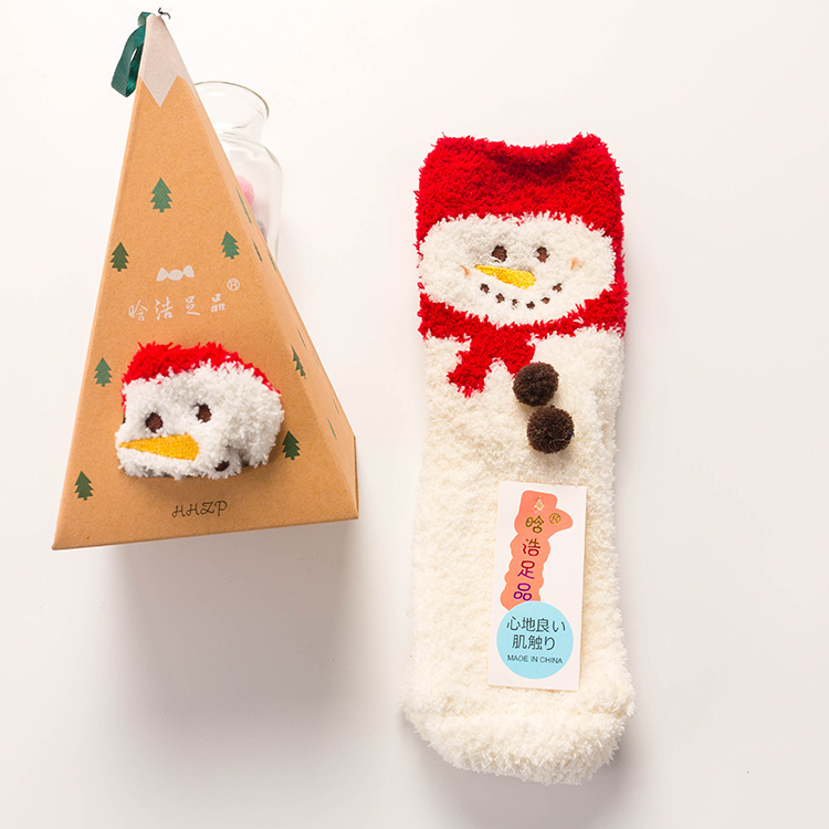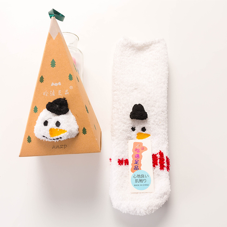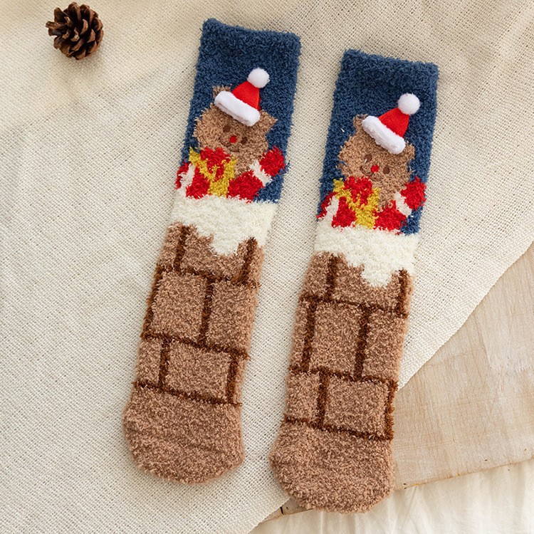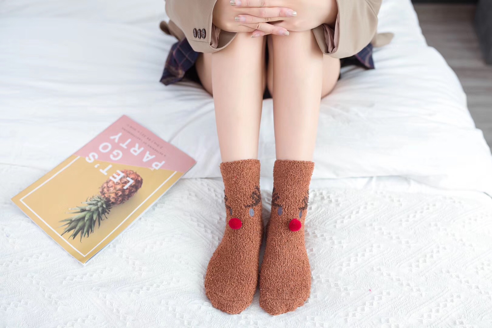 성인 입체 만화 자수 산호 양털 바닥 양말 귀여운 크리스마스 반 벨벳 양말 어린이 박스형 양말 도매스토어 가기