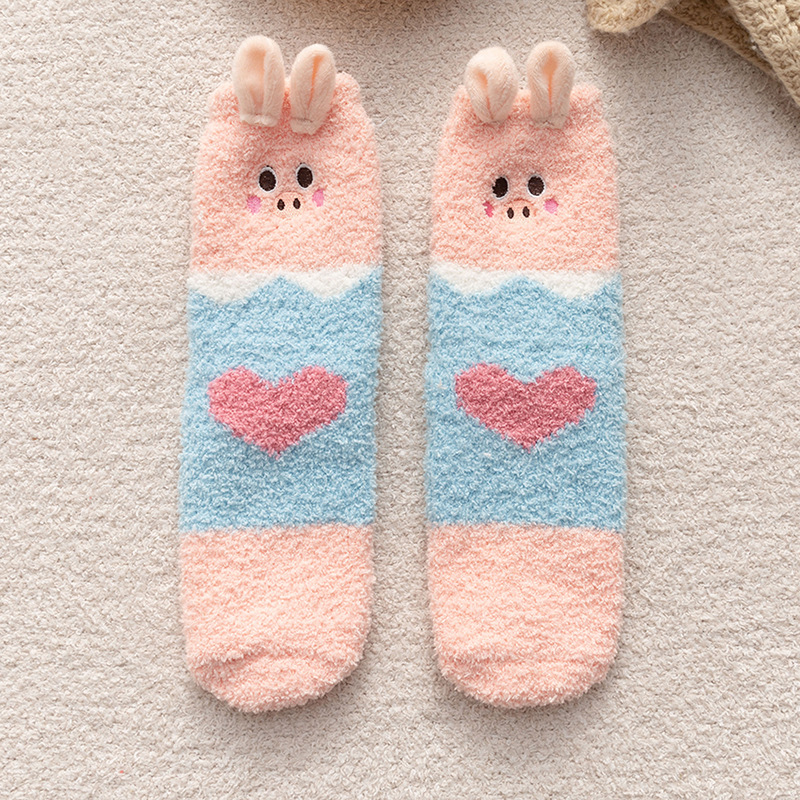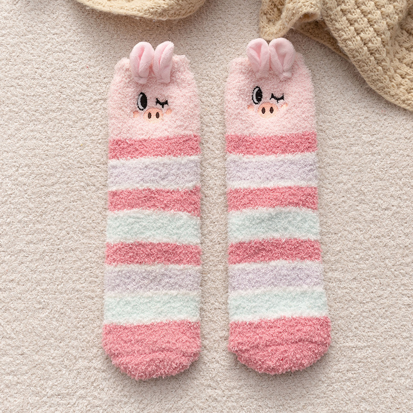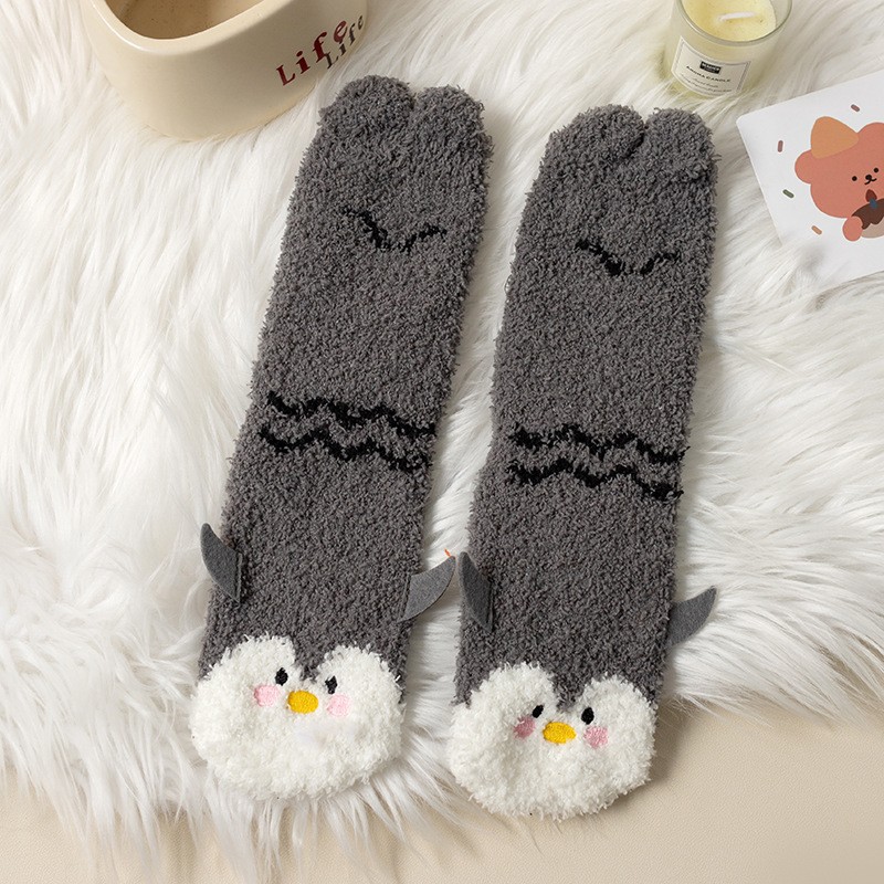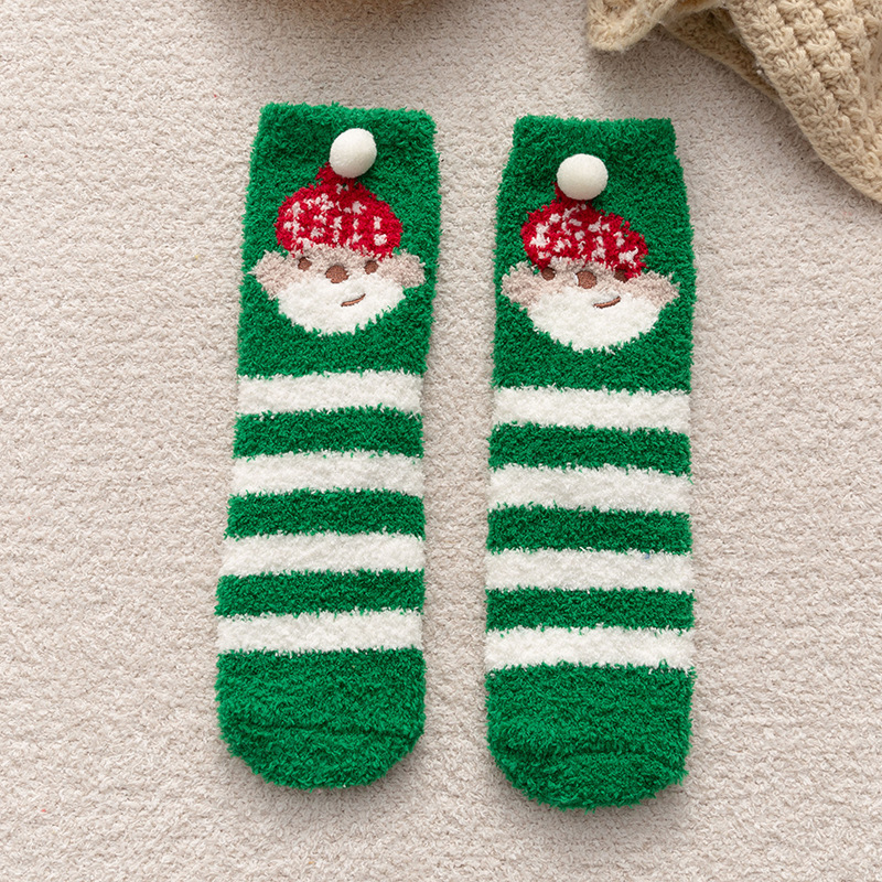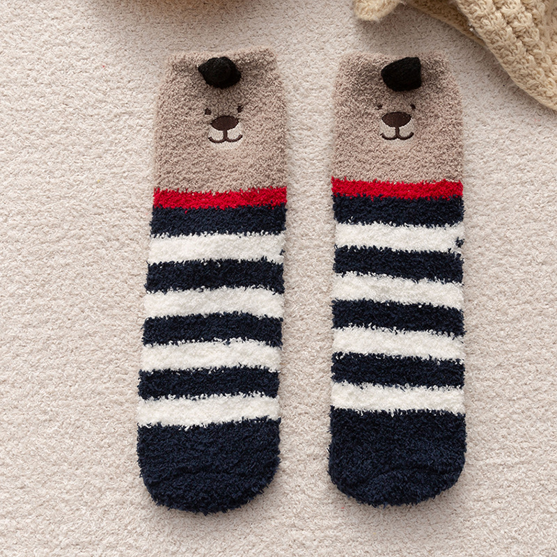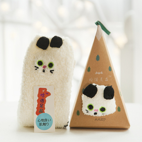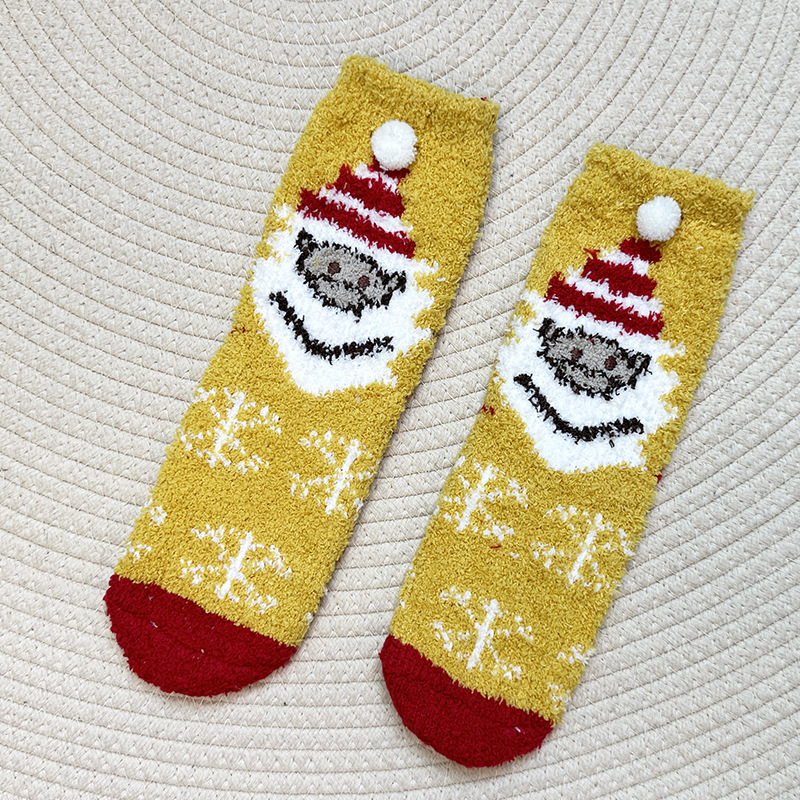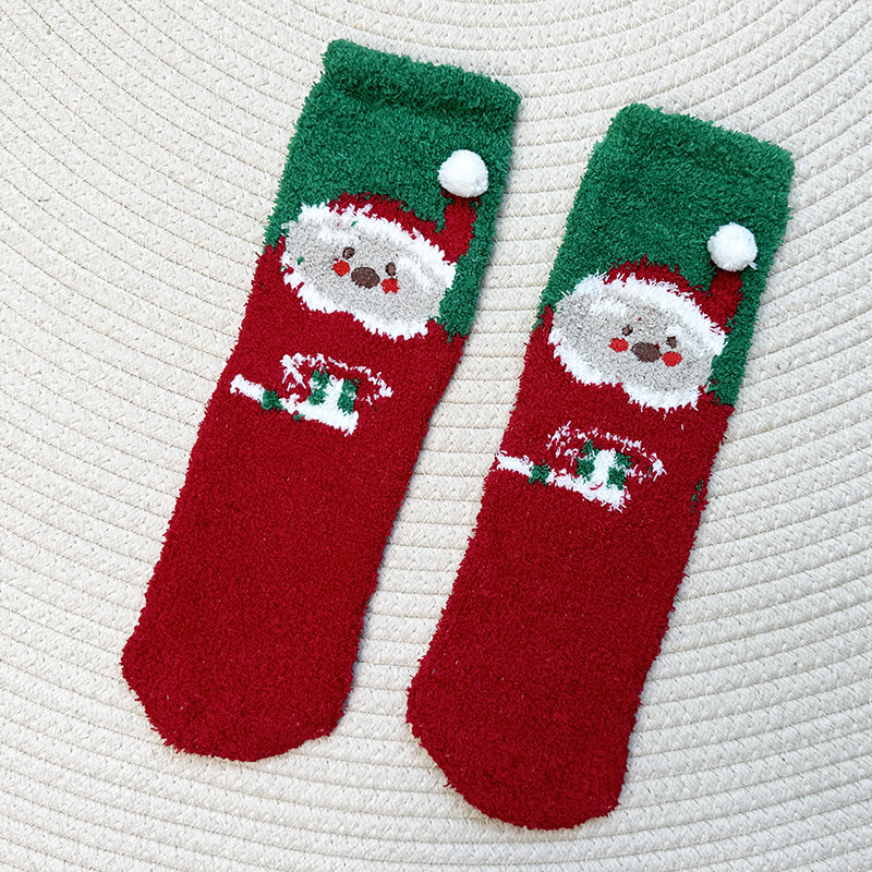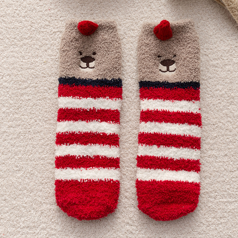 성인 입체 만화 자수 산호 양털 바닥 양말 귀여운 크리스마스 반 벨벳 양말 어린이 박스형 양말 도매스토어 가기