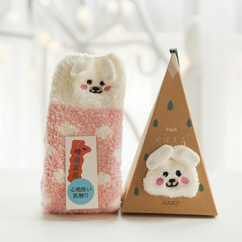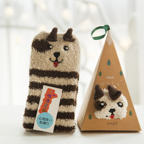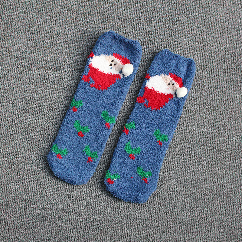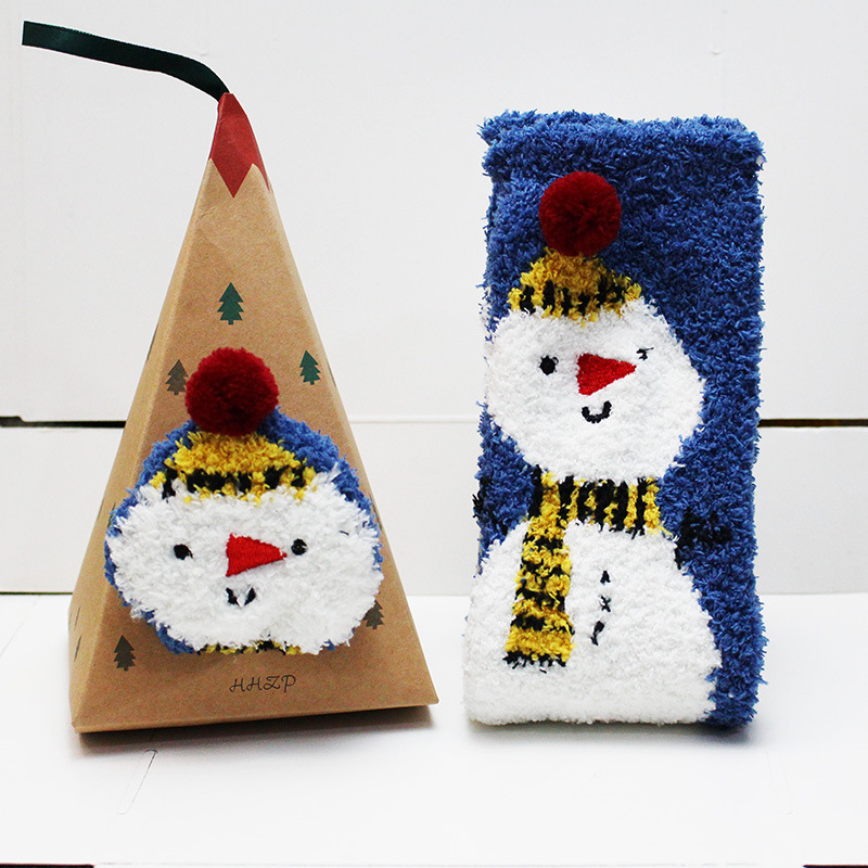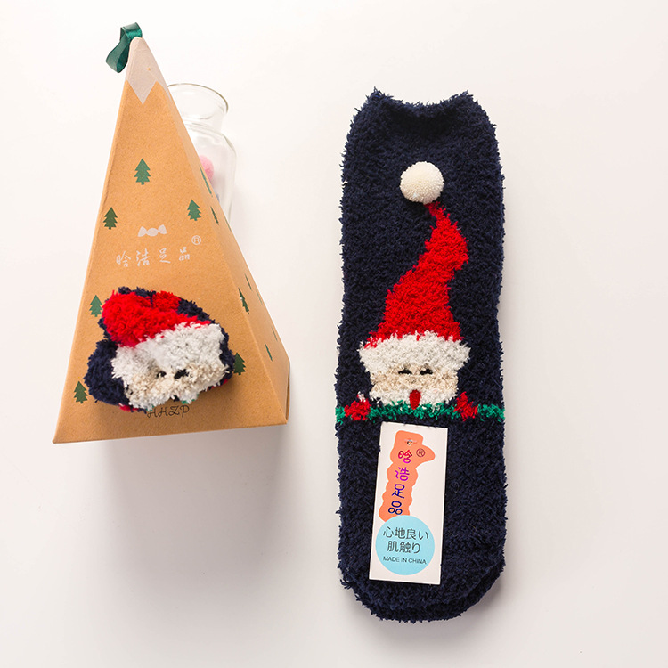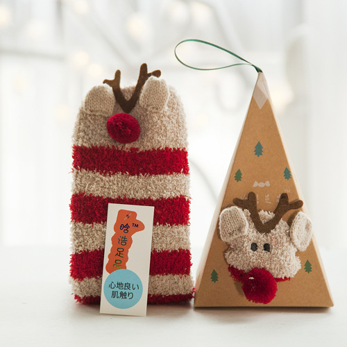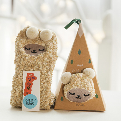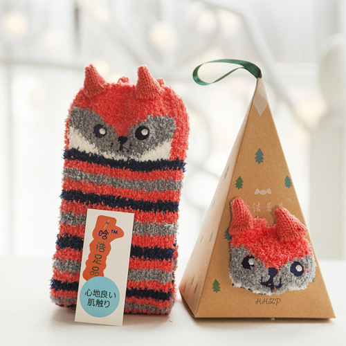 성인 입체 만화 자수 산호 양털 바닥 양말 귀여운 크리스마스 반 벨벳 양말 어린이 박스형 양말 도매