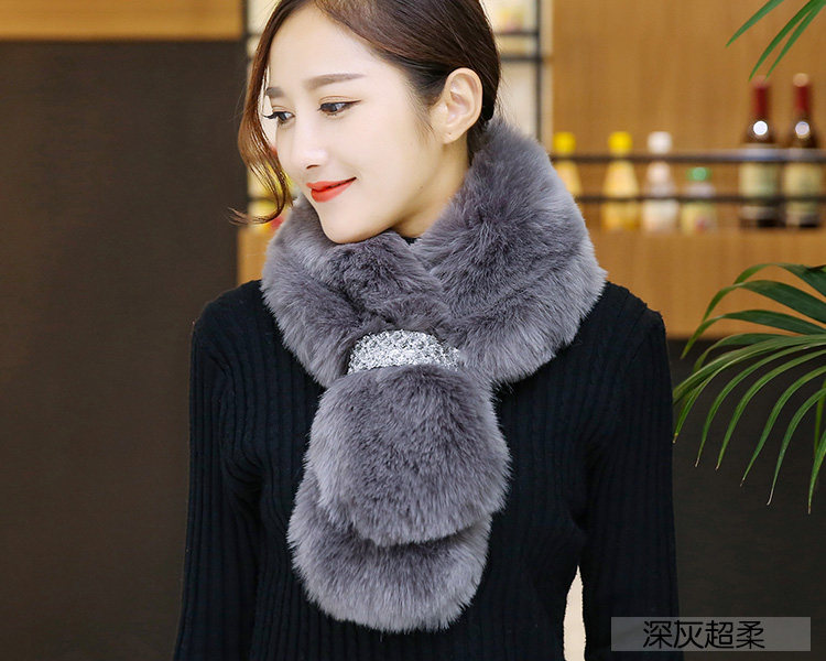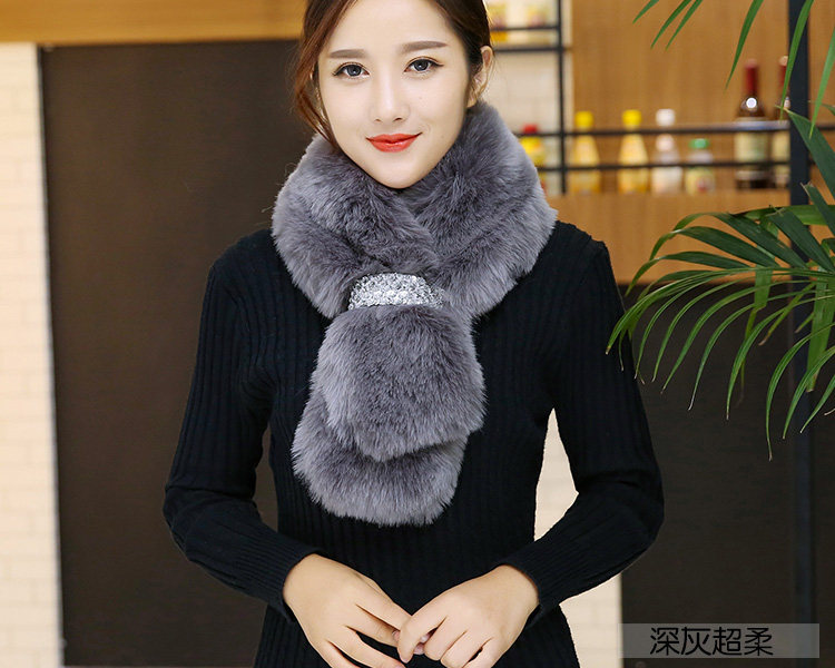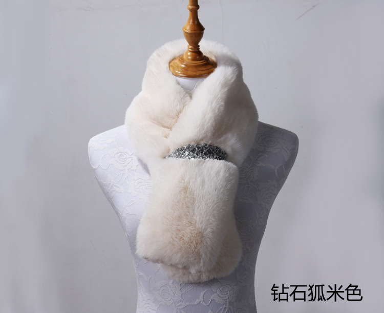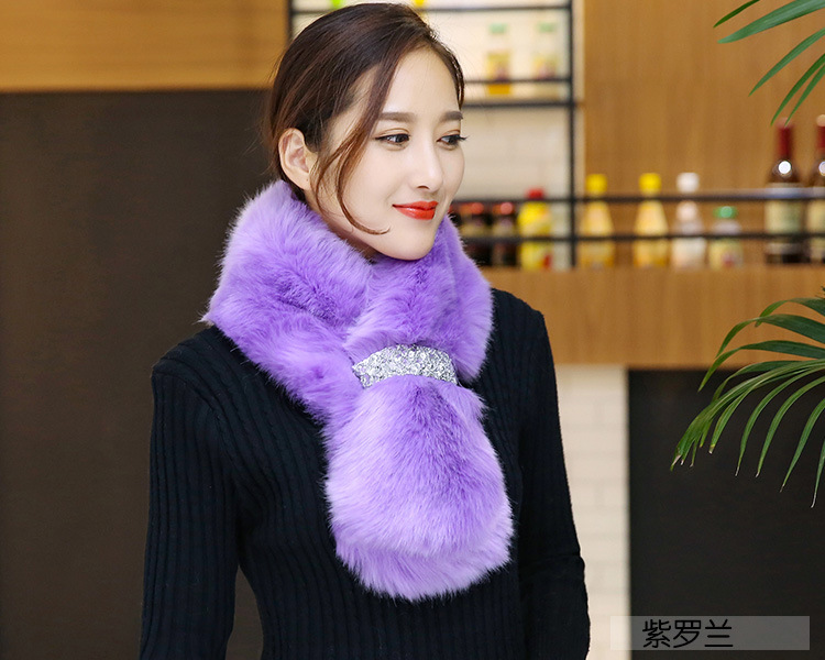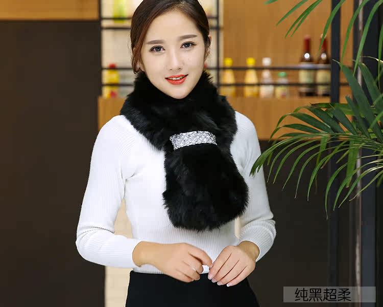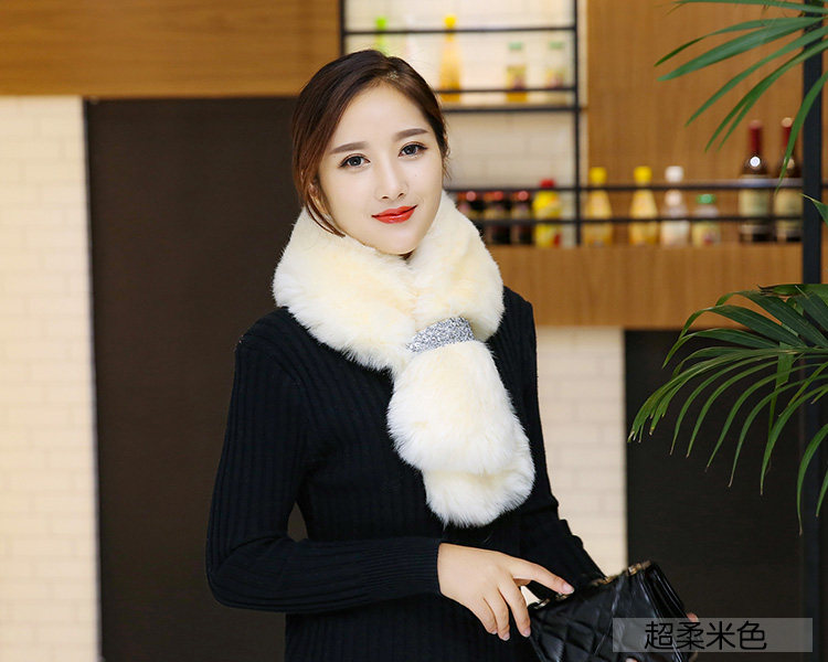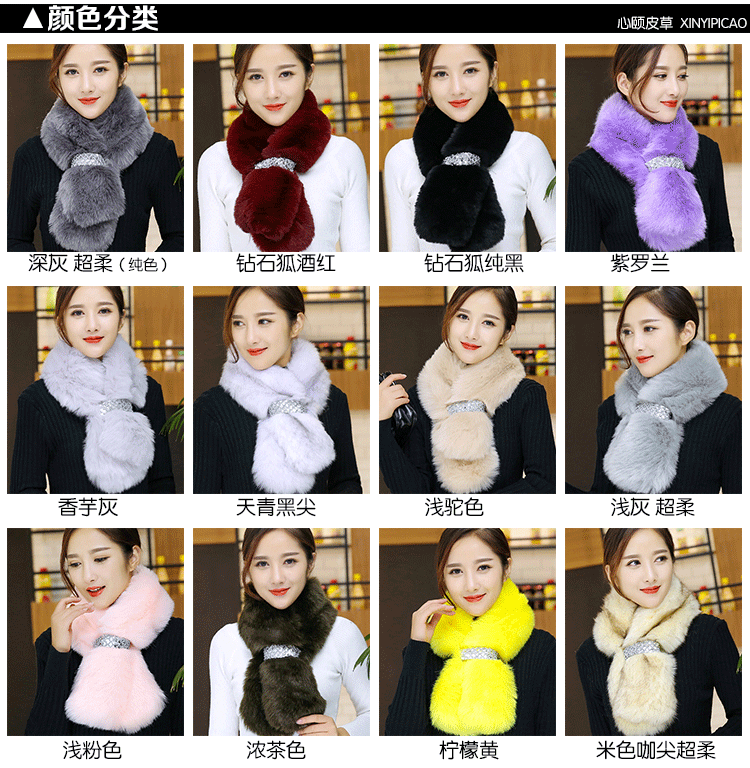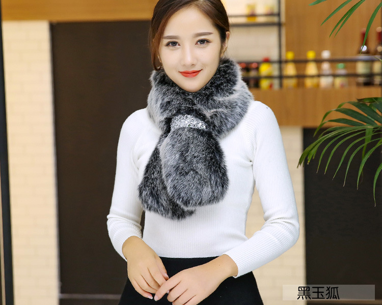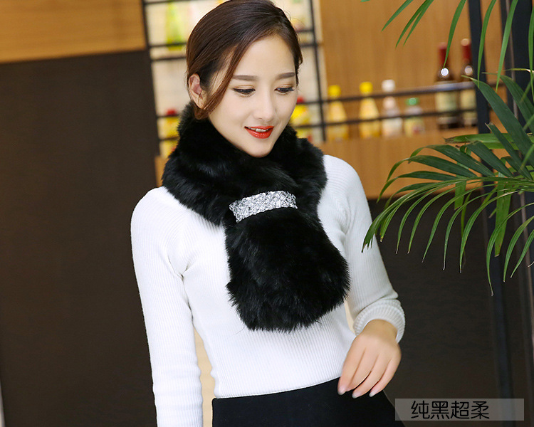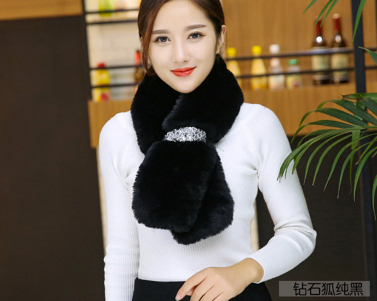 환희의 송가 앤디 가짜 여우 모피 보풀 가짜 모피 스카프 직사각형 목도리 화이트 블랙 가짜 칼라