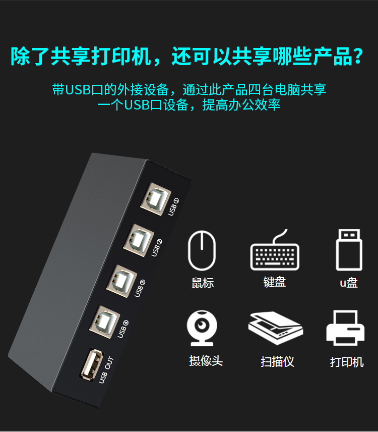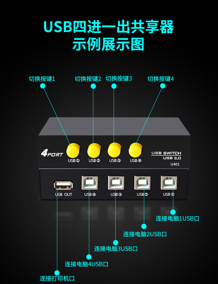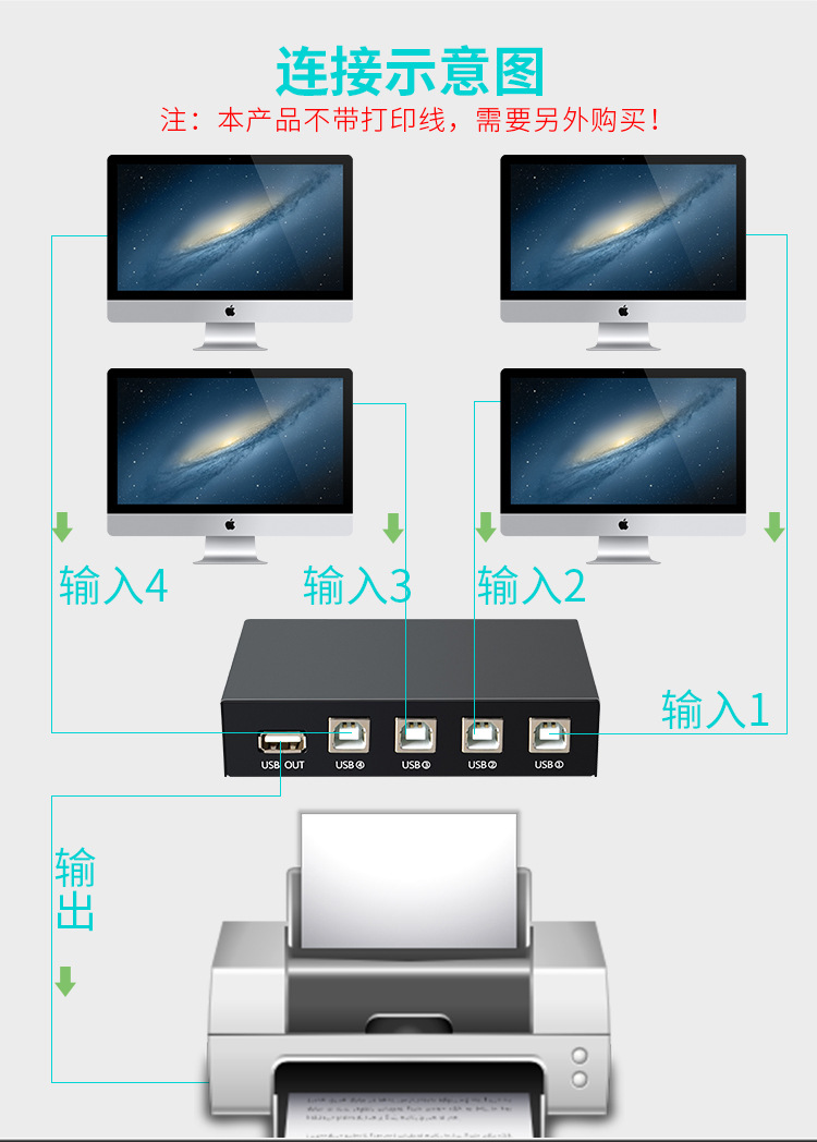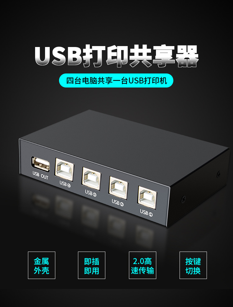 징화 컴퓨터 프린터 공유기 4포트 1USB 스위치, 4포트를 하나로 통합, 프린팅, 4포트 USB 고속 전송