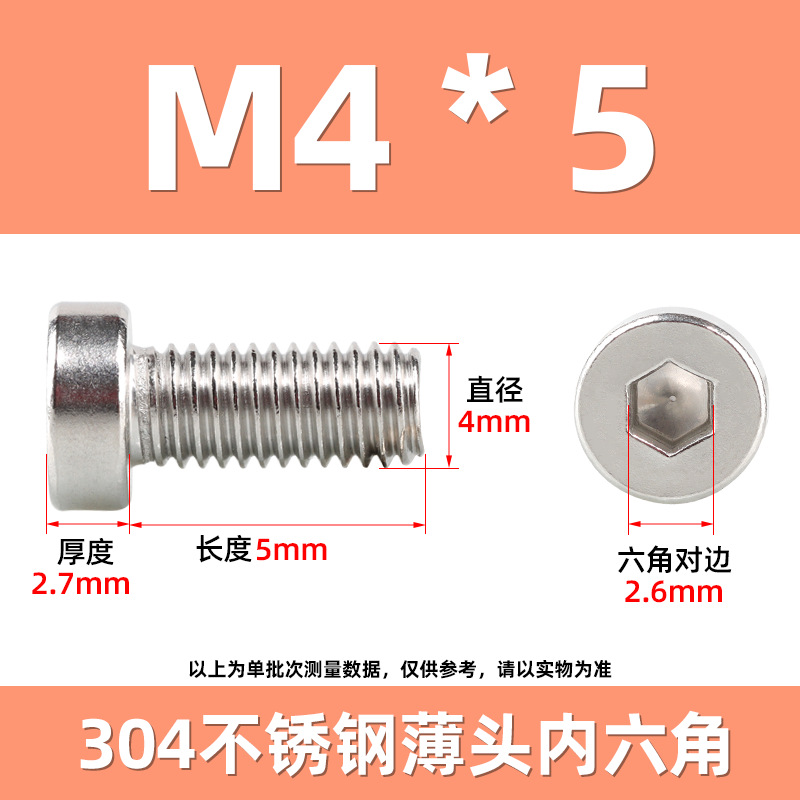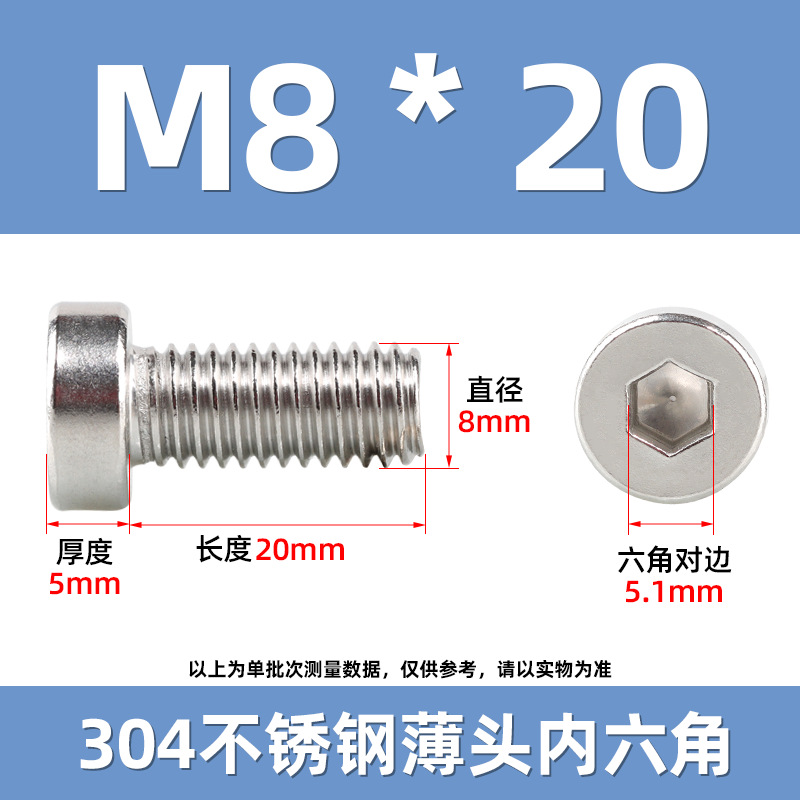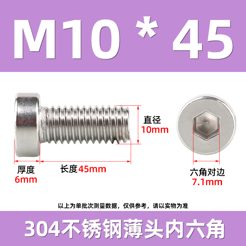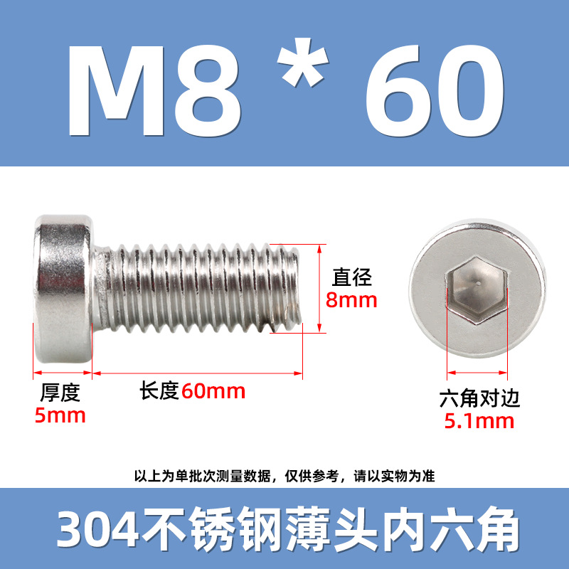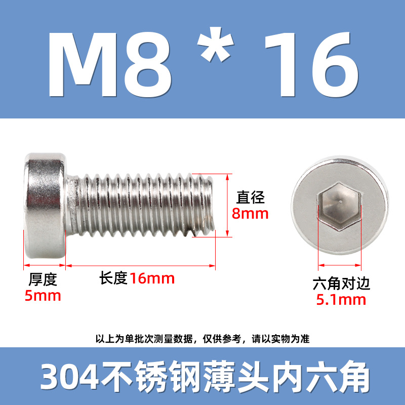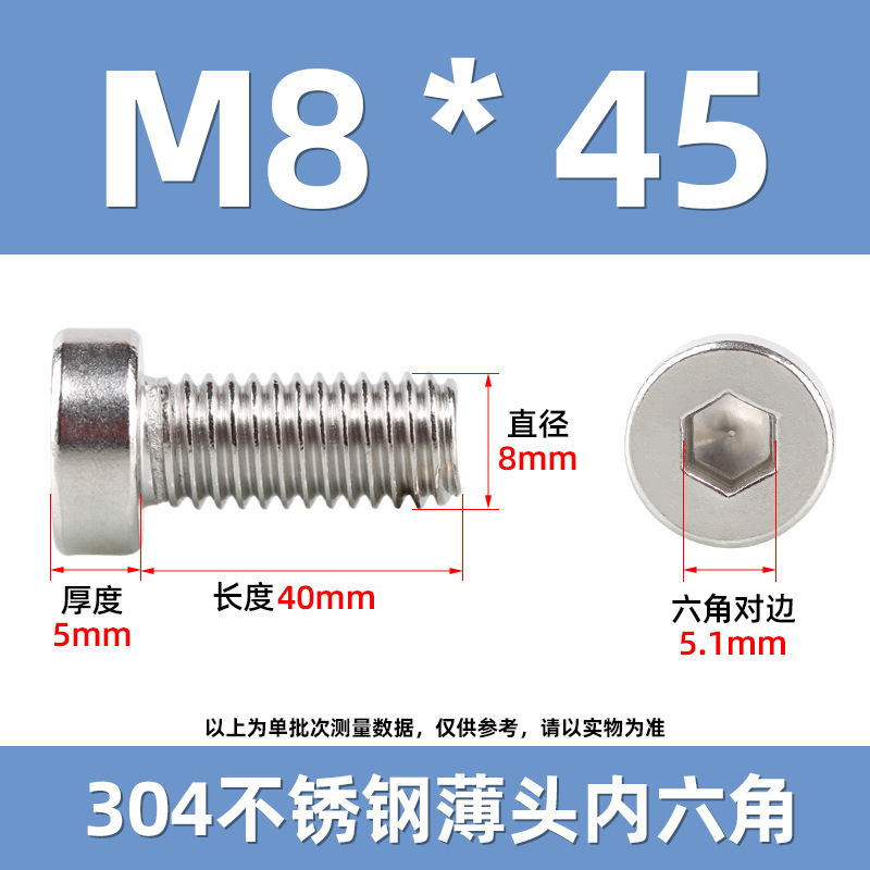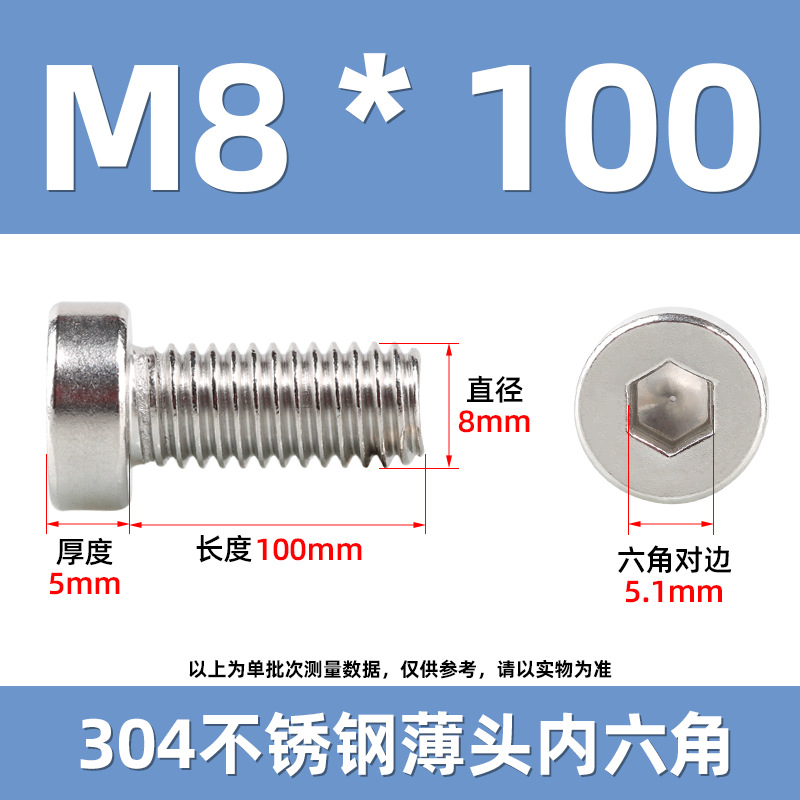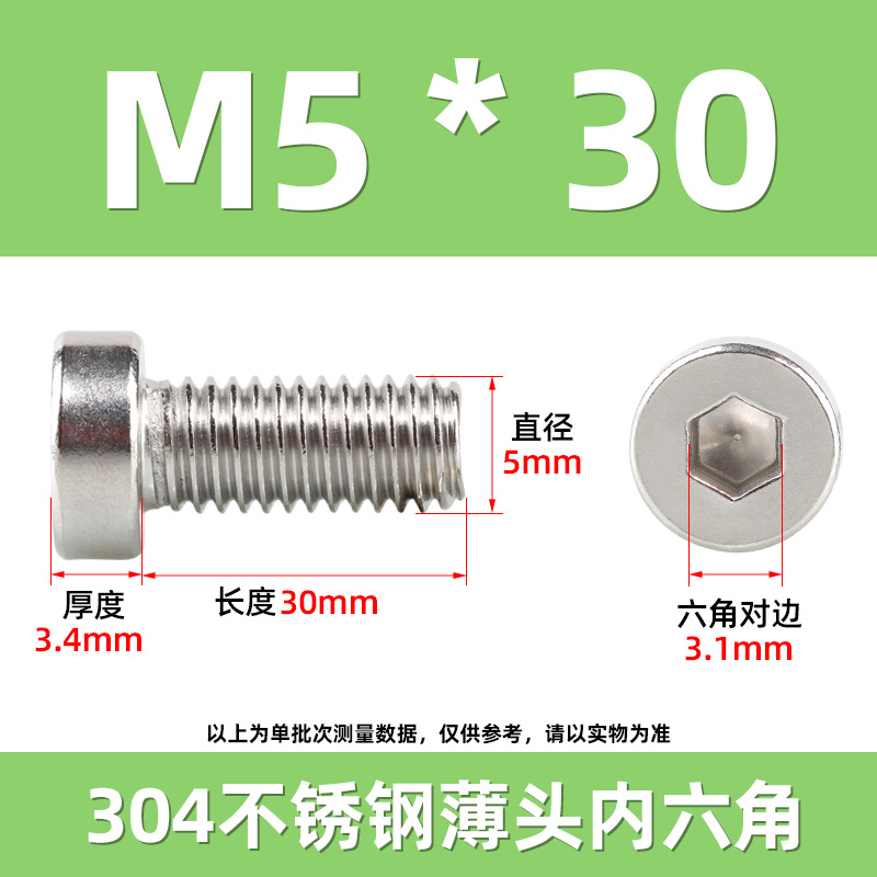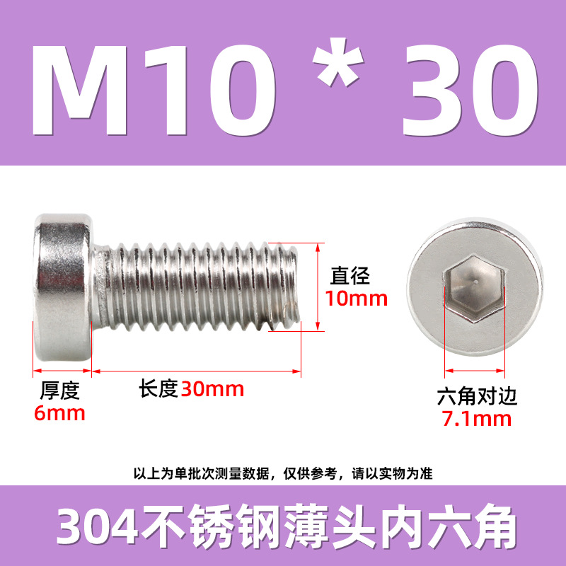 304 스테인레스 스틸 얇은 머리 육각 소켓 나사 DIN7984 원통형 머리 낮은 머리 육각 소켓 볼트 M3M4M5-M10