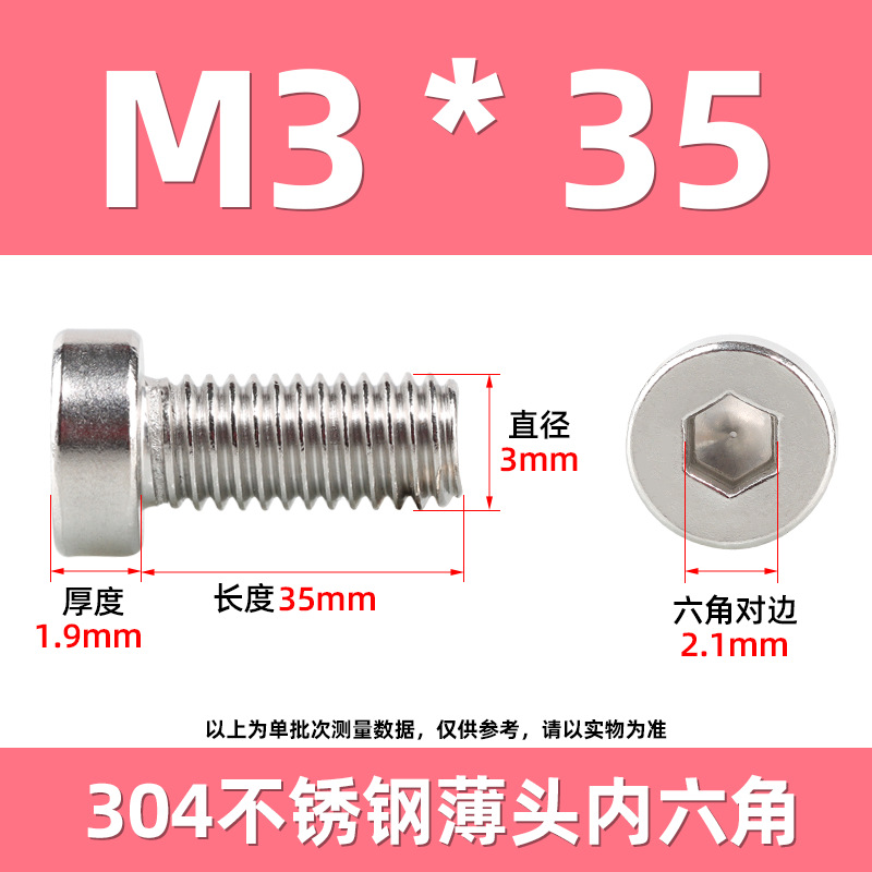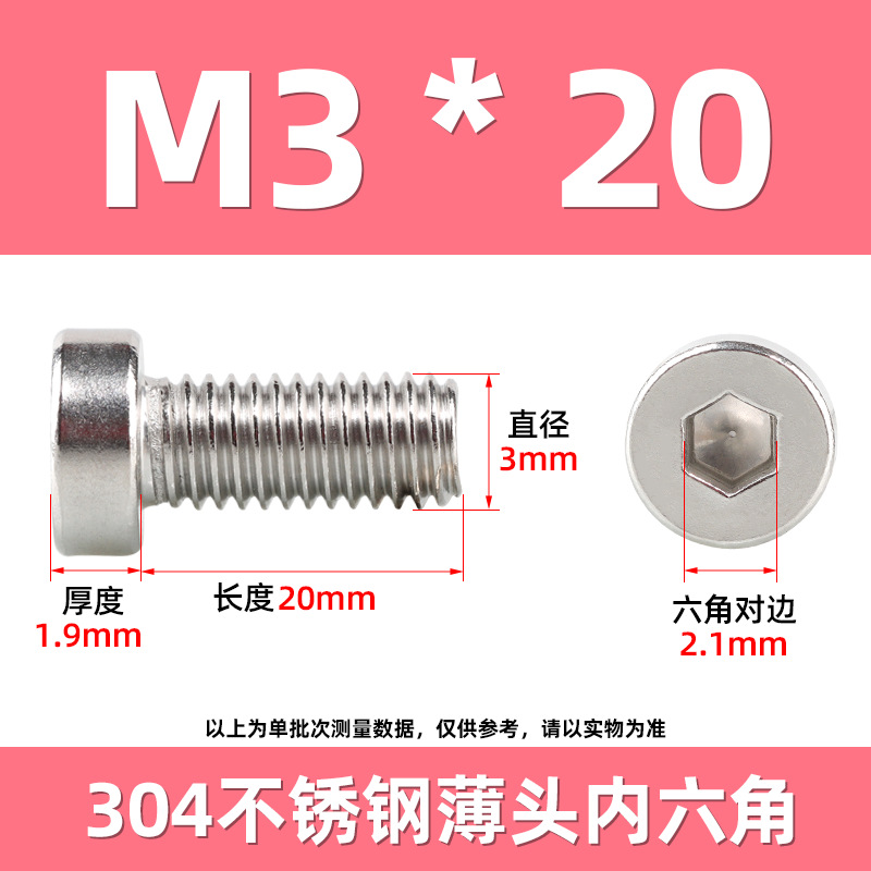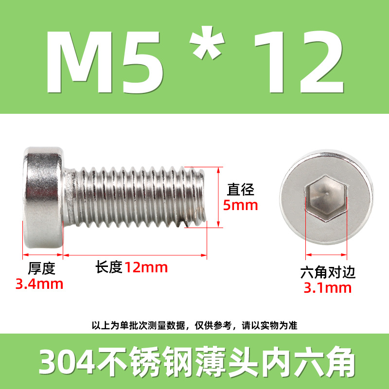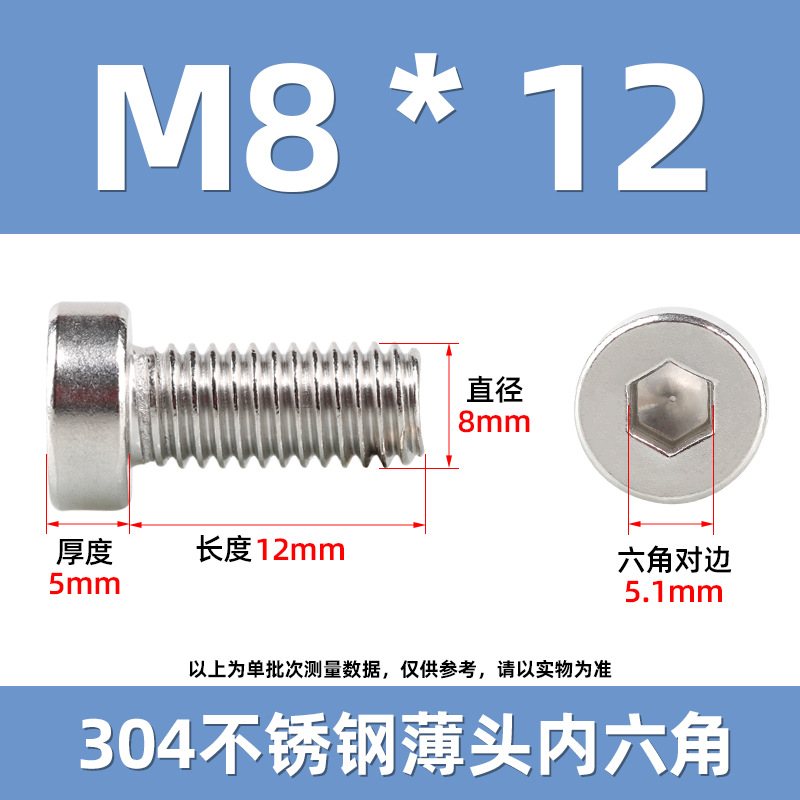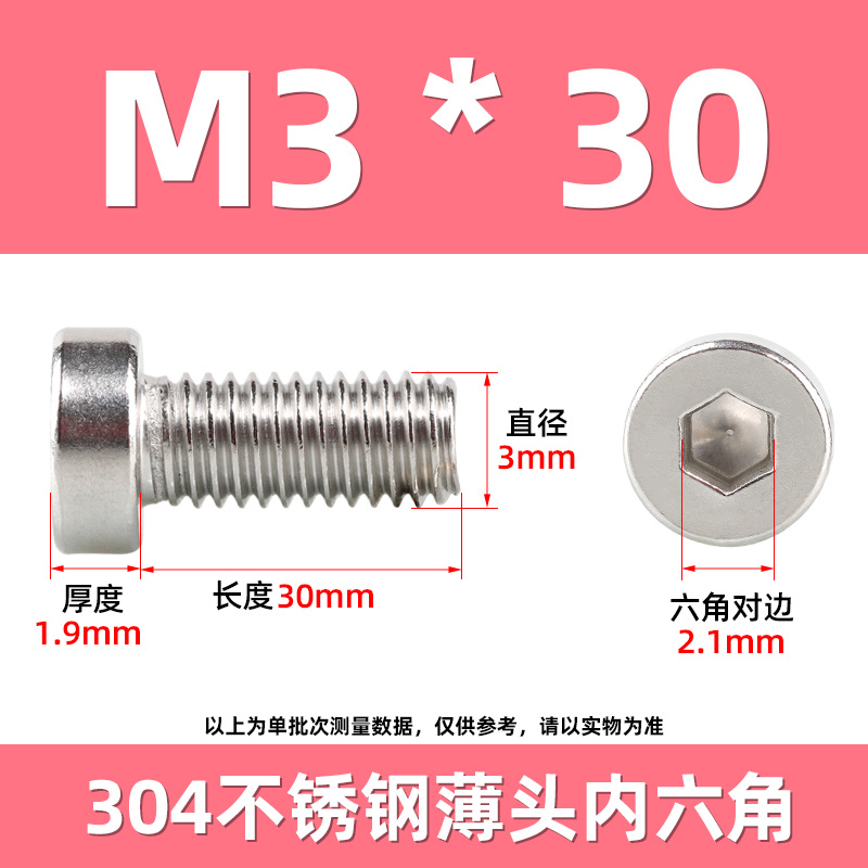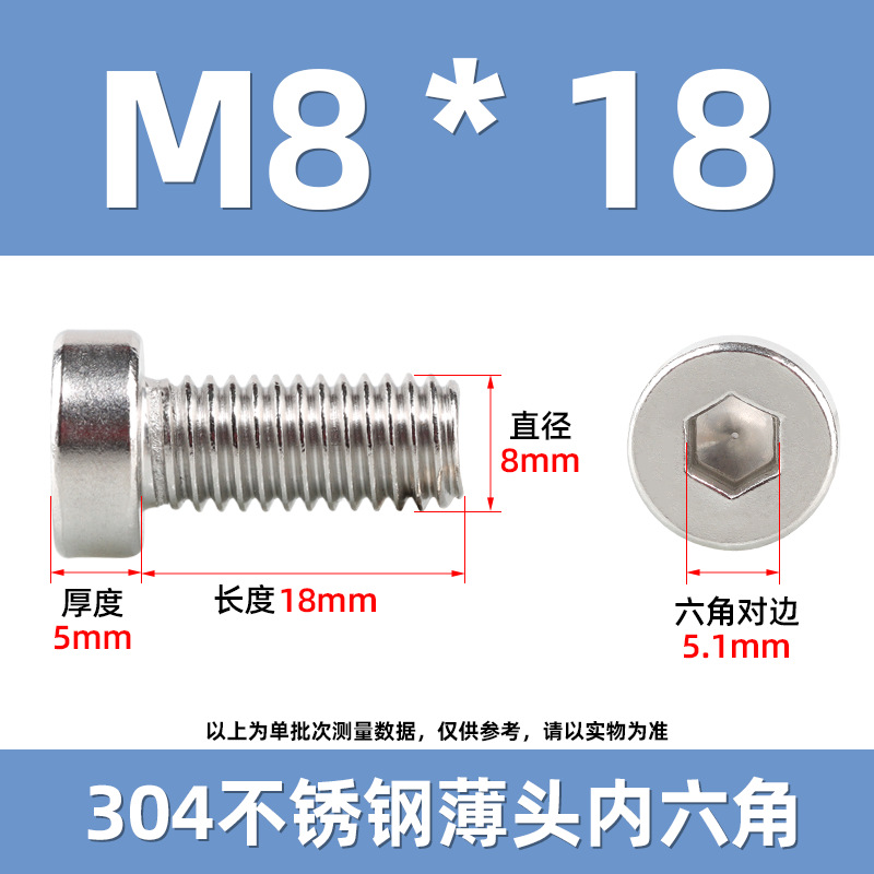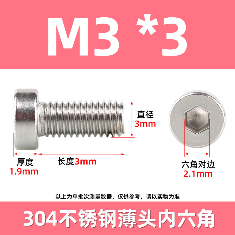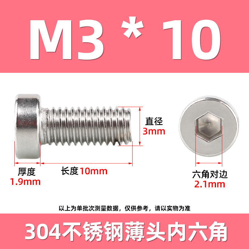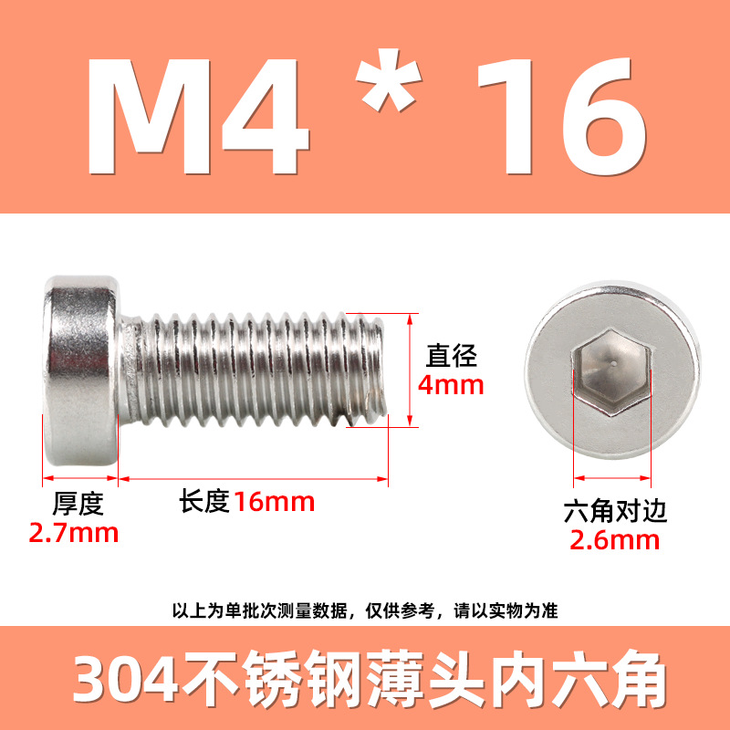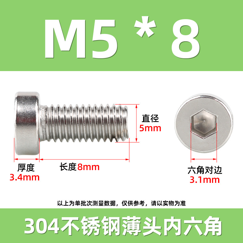 304 스테인레스 스틸 얇은 머리 육각 소켓 나사 DIN7984 원통형 머리 낮은 머리 육각 소켓 볼트 M3M4M5-M10