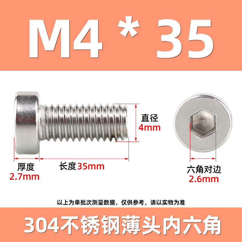 304 스테인레스 스틸 얇은 머리 육각 소켓 나사 DIN7984 원통형 머리 낮은 머리 육각 소켓 볼트 M3M4M5-M10스토어 가기