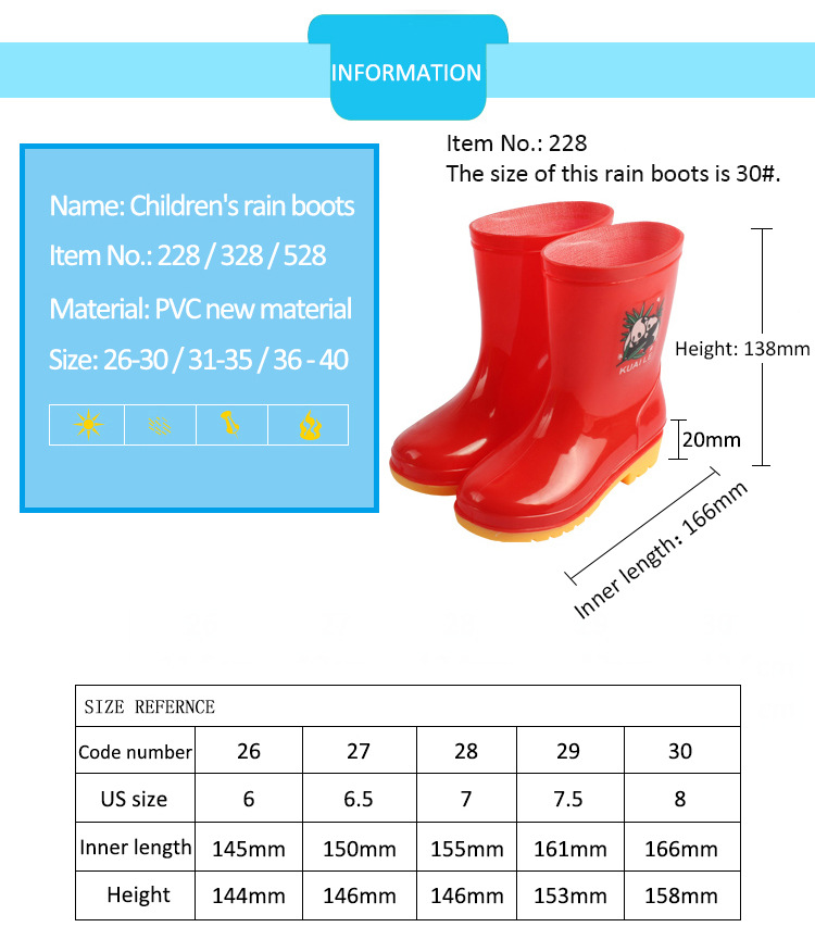 공장 도매 PVC 어린이 레인부츠 도매 미끄럼 방지 수출용 워터슈즈 만화 도매 레인부츠 228