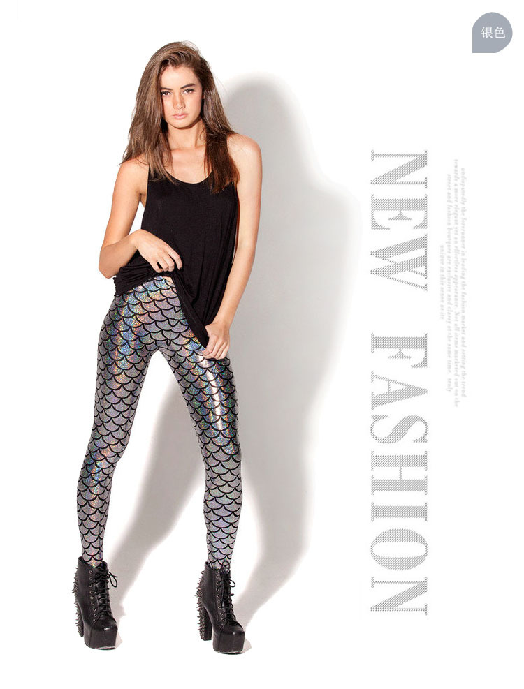 나이트 클럽 피쉬 스케일 인어 레깅스 레깅스 타이트 레깅스 피트니스 팬츠 사이즈 스트레치 크롭 팬츠 레깅스