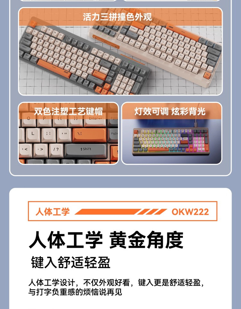 ACER/Acer OKW222 다채로운 발광 컴퓨터 오피스 타이핑 게임 유선 USB 키보드 세련된 대비 색상 키