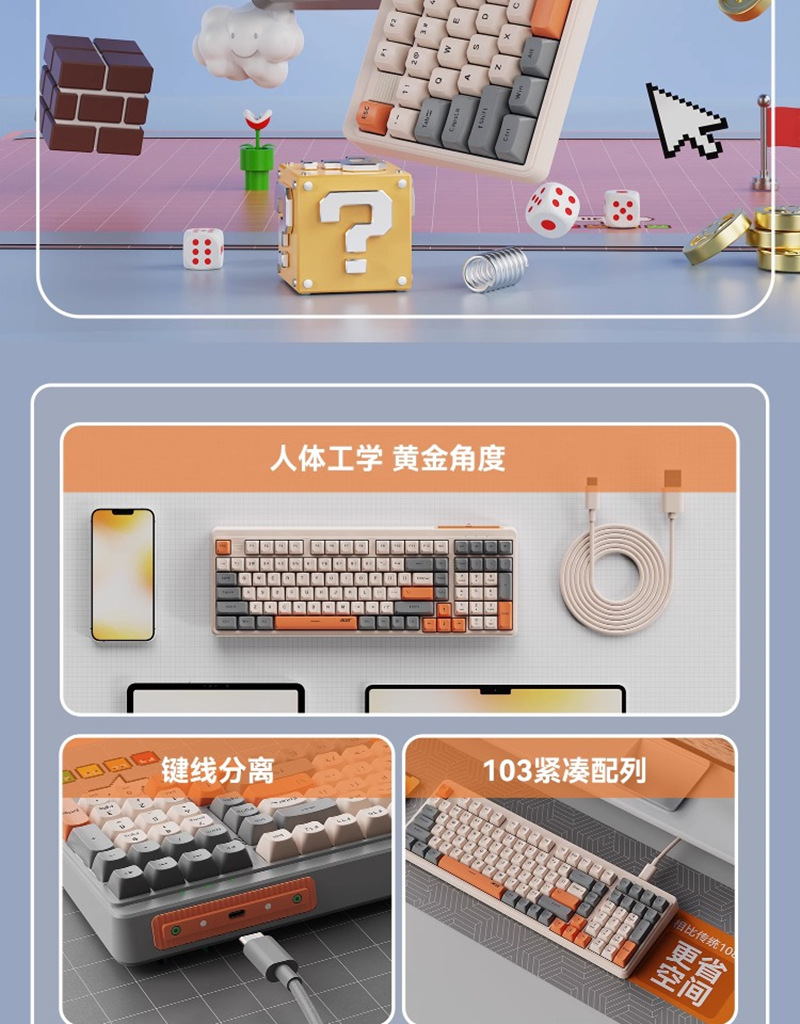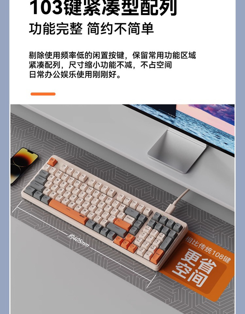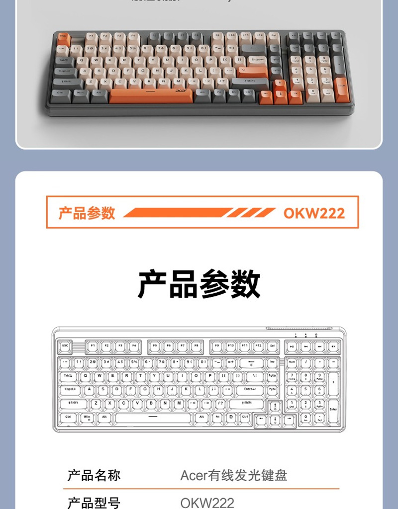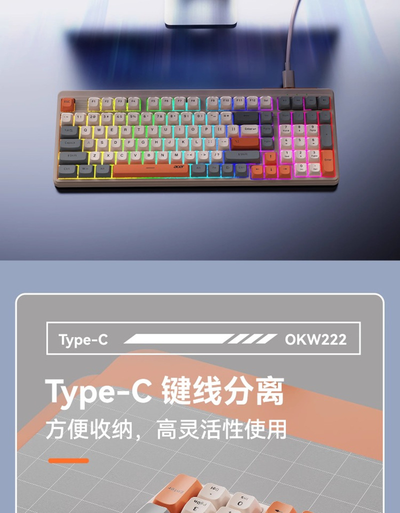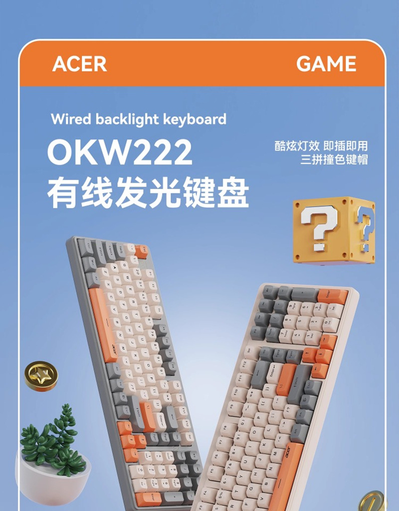 ACER/Acer OKW222 다채로운 발광 컴퓨터 오피스 타이핑 게임 유선 USB 키보드 세련된 대비 색상 키스토어 가기