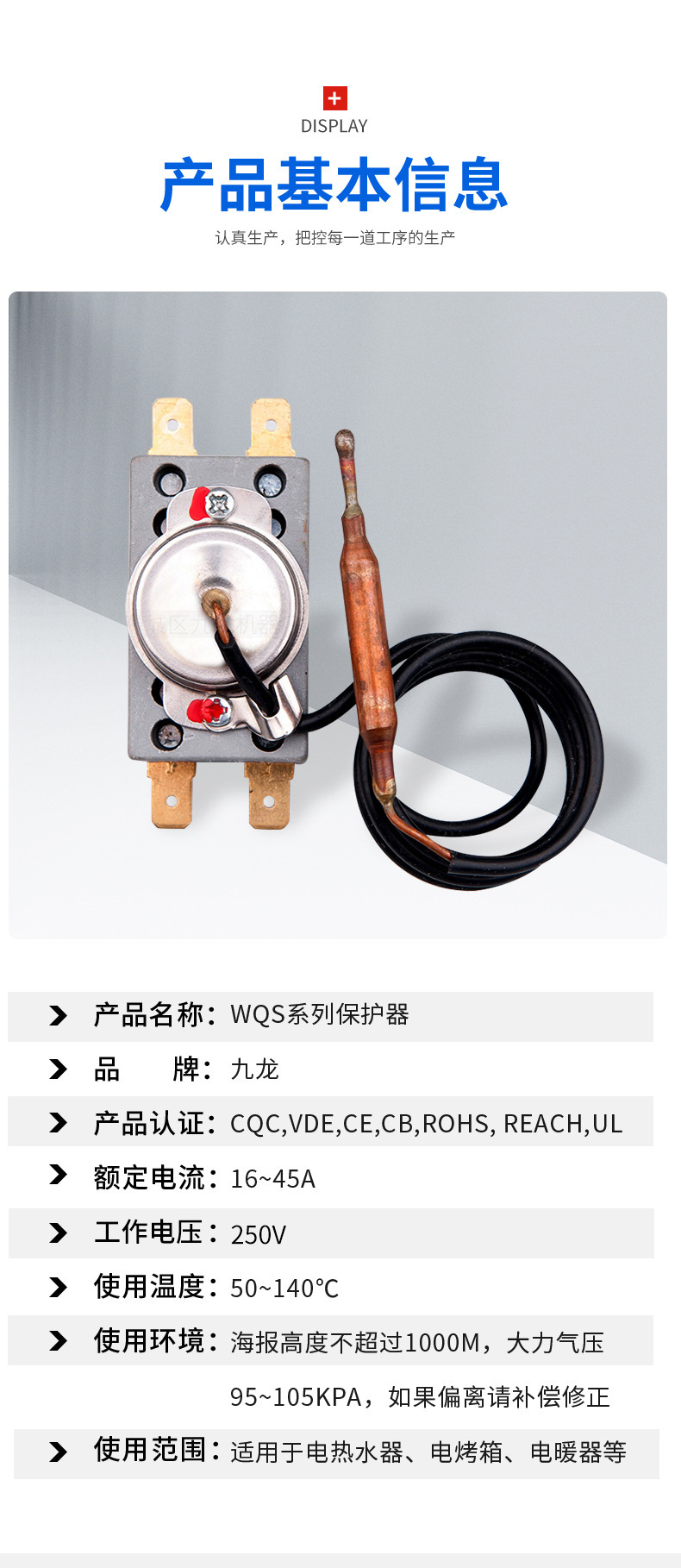 구룡 WQS 시리즈 과열 보호기 액체 팽창 에어프라이어 온수기 온도 조절기 온도 제어 컨트롤러