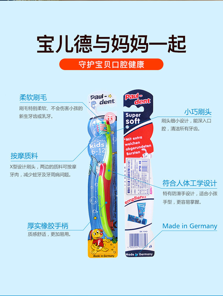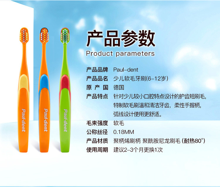 수입품 Paul-dent 청소년용 부드러운 칫솔 (6-12세)