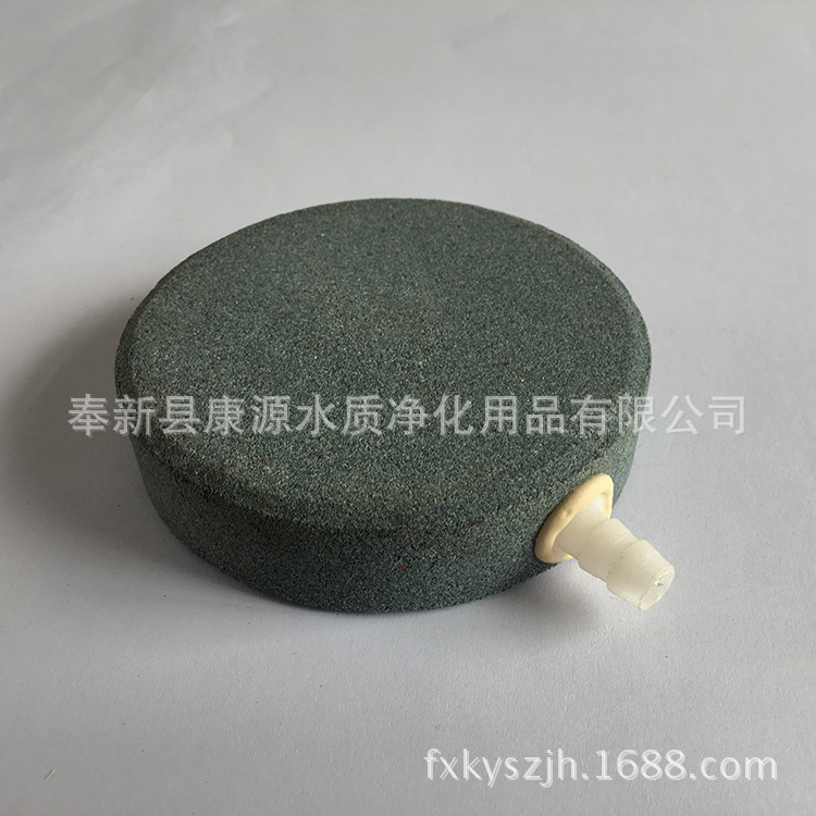 气泡石俗称散气石(沙头)、曝气器。英文品名为:airstone,采用优质原料白刚玉、棕刚玉,通过高温烧结(1300摄氏度),坚固耐用,散气性好,过滤性强。气泡石种类:棕刚玉气泡石、白刚玉气泡石、碳化硅气泡石、矿砂气泡石、树脂气泡石、塑料气泡石、木制气泡石等,不同材料的气泡石,制作工艺亦不同。诸如,树脂气泡石采用粘连手段,粘贴而成,寿命比烧制的短,价格低廉。矿砂气泡石采用胶水粘结而成,相对于白刚玉、碳化硅,稍逊一些。塑料气泡石,故名思议,采用塑料制作而成,轻巧简便,可弯曲成任意形状,使得产生的气泡在水中呈现别样的风采,但其本体重量太轻导致本身不能沉底。木制气泡石,容易吸收水体中的水分,木制品短期泡于水中能够防止腐烂,但是长期泡在水中,由于木头吸收水中的水分,从而使得木头膨胀变大,慢慢的底部开始烂,接着一点一点沉,一点一点烂,其使用寿命也不敌白刚玉、棕刚玉气泡石。