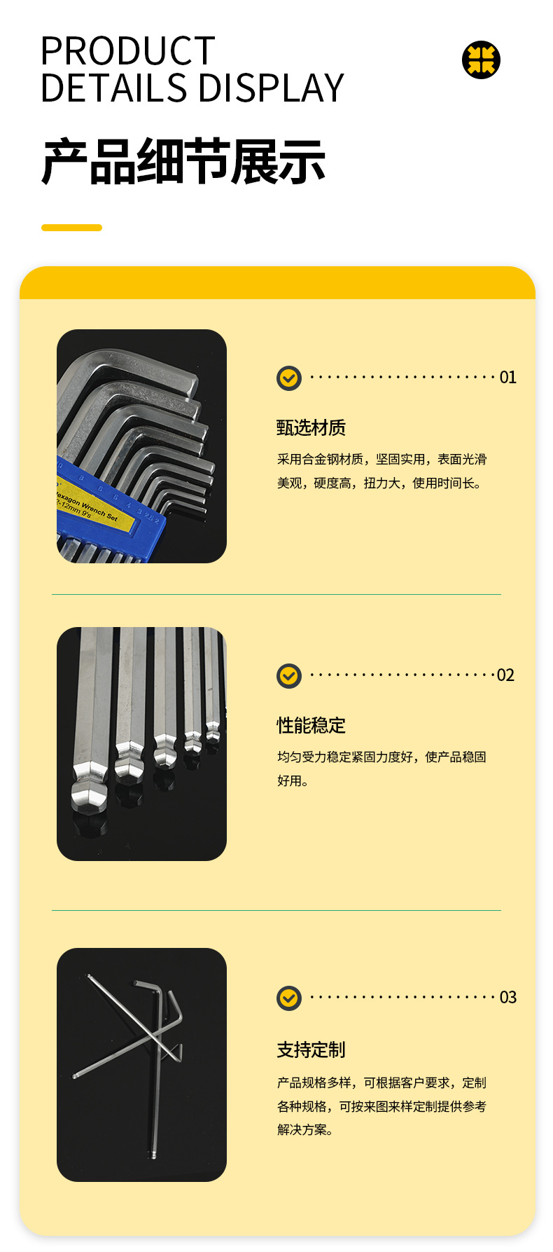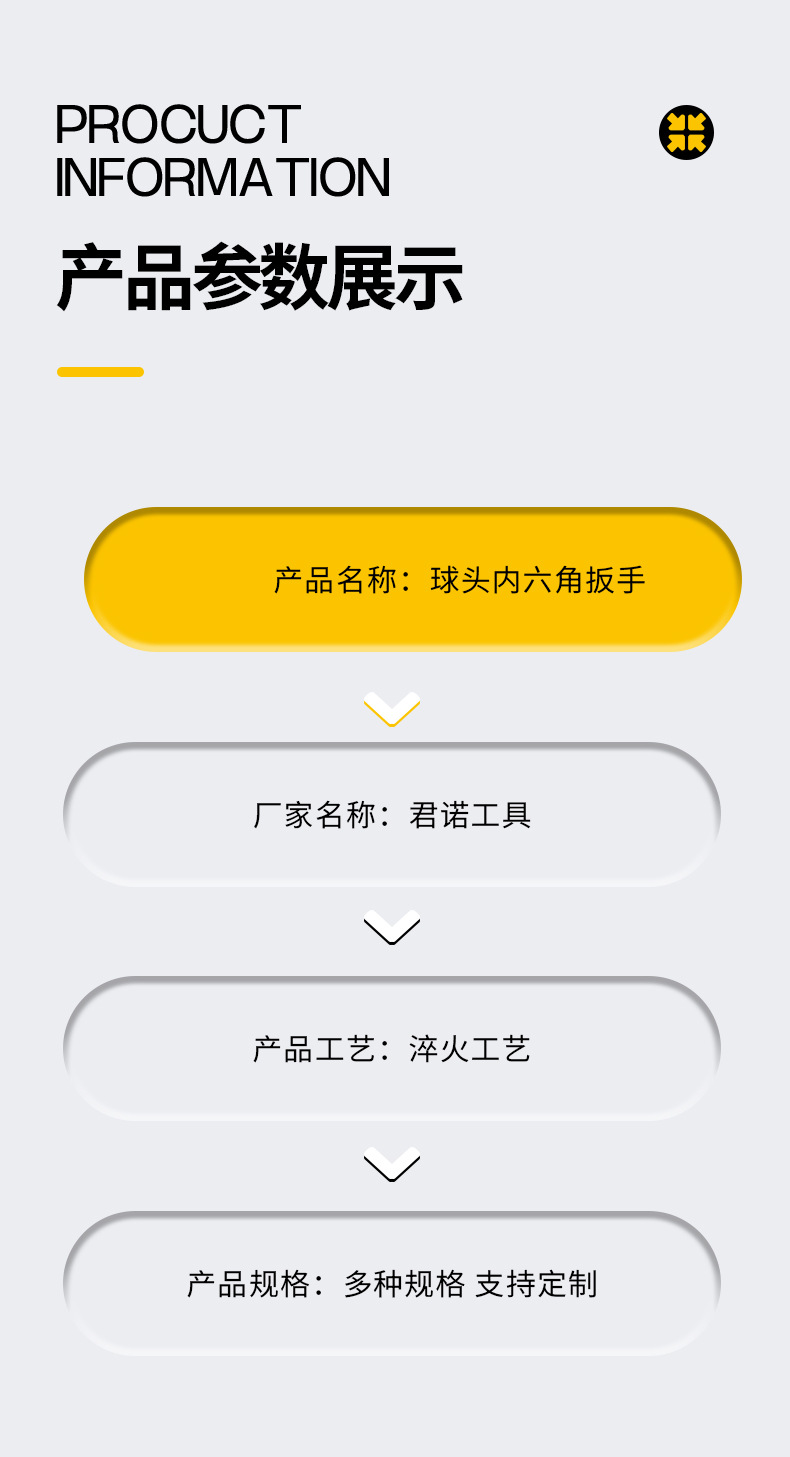Junnuo Tools는 모든 종류의 구형 길쭉한 Allen 렌치 제조를 전문으로합니다. 육각형 렌치 공장 직접 판매스토어 가기