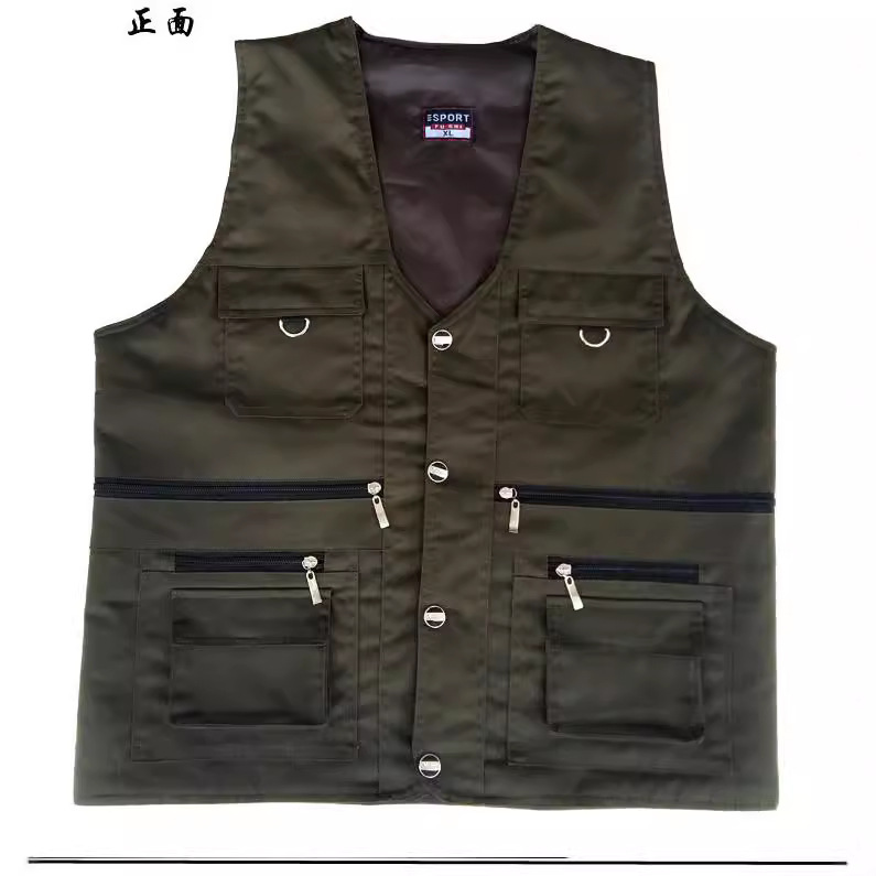 가을 야외 카키 조끼 낚시 사진 남자의 레저 조끼 따뜻한 포켓 장식 실크 재고 도매