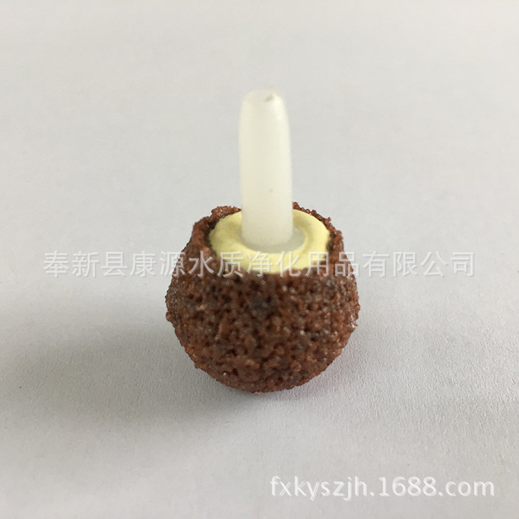 气泡石俗称散气石(沙头)、曝气器。英文品名为:airstone,采用优质原料白刚玉、棕刚玉,通过高温烧结(1300摄氏度),坚固耐用,散气性好,过滤性强。气泡石种类:棕刚玉气泡石、白刚玉气泡石、碳化硅气泡石、矿砂气泡石、树脂气泡石、塑料气泡石、木制气泡石等,不同材料的气泡石,制作工艺亦不同。诸如,树脂气泡石采用粘连手段,粘贴而成,寿命比烧制的短,价格低廉。矿砂气泡石采用胶水粘结而成,相对于白刚玉、碳化硅,稍逊一些。塑料气泡石,故名思议,采用塑料制作而成,轻巧简便,可弯曲成任意形状,使得产生的气泡在水中呈现别样的风采,但其本体重量太轻导致本身不能沉底。木制气泡石,容易吸收水体中的水分,木制品短期泡于水中能够防止腐烂,但是长期泡在水中,由于木头吸收水中的水分,从而使得木头膨胀变大,慢慢的底部开始烂,接着一点一点沉,一点一点烂,其使用寿命也不敌白刚玉、棕刚玉气泡石。