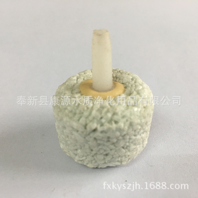 气泡石俗称散气石(沙头)、曝气器。英文品名为:airstone,采用优质原料白刚玉、棕刚玉,通过高温烧结(1300摄氏度),坚固耐用,散气性好,过滤性强。气泡石种类:棕刚玉气泡石、白刚玉气泡石、碳化硅气泡石、矿砂气泡石、树脂气泡石、塑料气泡石、木制气泡石等,不同材料的气泡石,制作工艺亦不同。诸如,树脂气泡石采用粘连手段,粘贴而成,寿命比烧制的短,价格低廉。矿砂气泡石采用胶水粘结而成,相对于白刚玉、碳化硅,稍逊一些。塑料气泡石,故名思议,采用塑料制作而成,轻巧简便,可弯曲成任意形状,使得产生的气泡在水中呈现别样的风采,但其本体重量太轻导致本身不能沉底。木制气泡石,容易吸收水体中的水分,木制品短期泡于水中能够防止腐烂,但是长期泡在水中,由于木头吸收水中的水分,从而使得木头膨胀变大,慢慢的底部开始烂,接着一点一点沉,一点一点烂,其使用寿命也不敌白刚玉、棕刚玉气泡石。